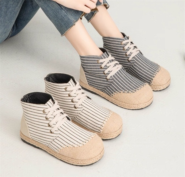 ストライプキャンバス編み上げシューズ 2color fu0850