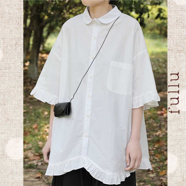 フリル袖オーバーシルエットチェニックシャツ 3color fu0754
