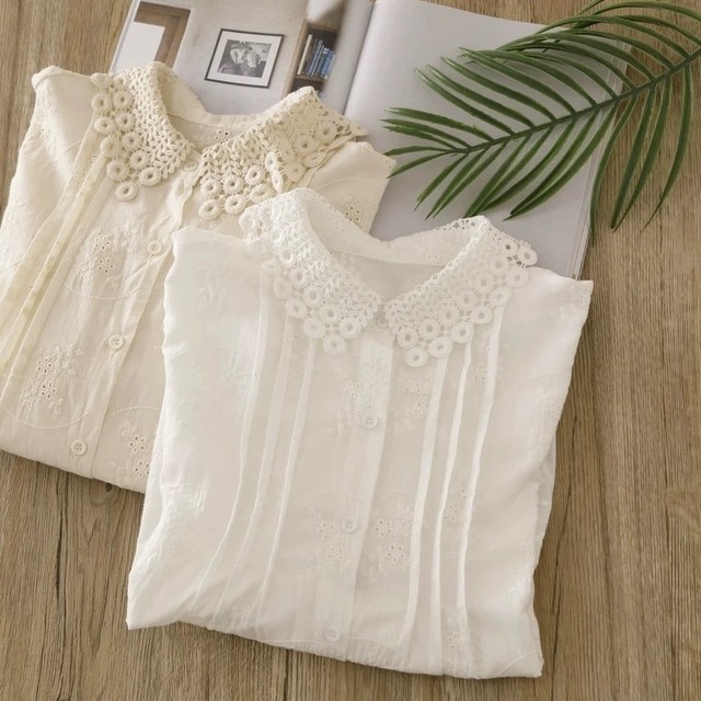 花刺繍とスカラップ裾のブラウス 2color fu0904