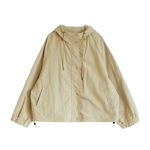 フード付きで程よいアクセントをプラスしつつ、裾のドローコードでシルエットの変化も楽しめます。季節の変わり目に活躍する便利なアウターです。