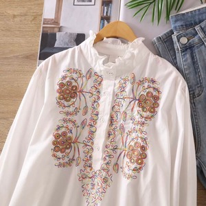 ハイネックフリルレインボーカラー刺繍ブラウス fu0656