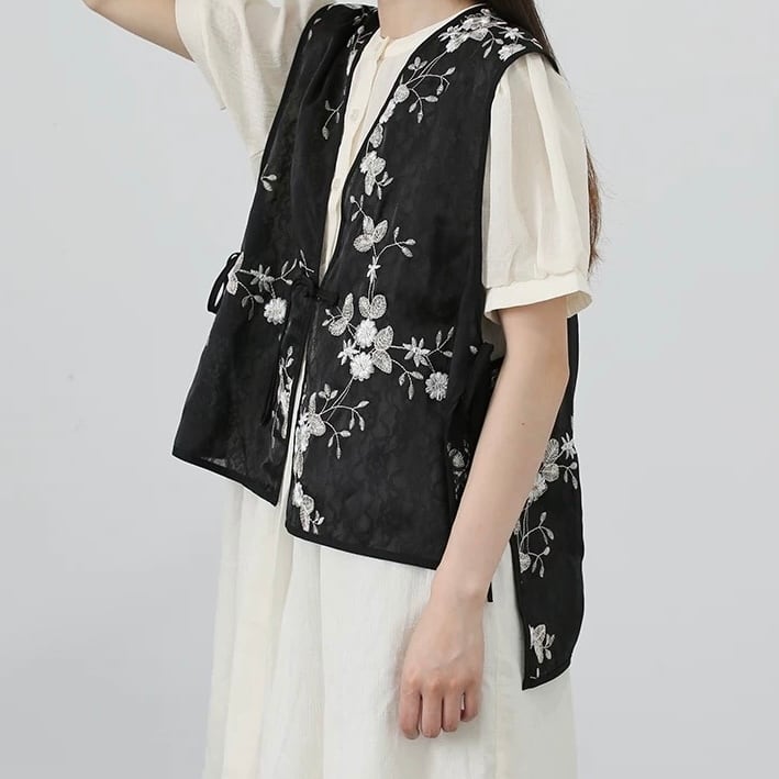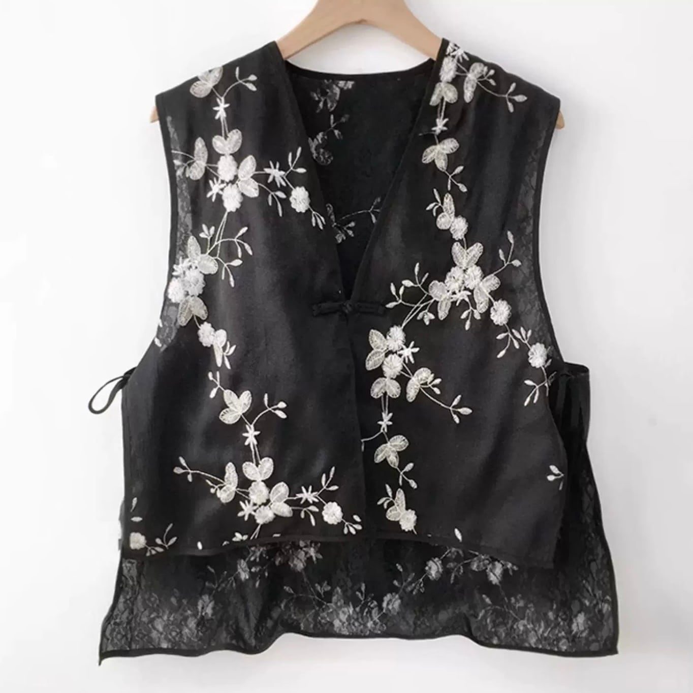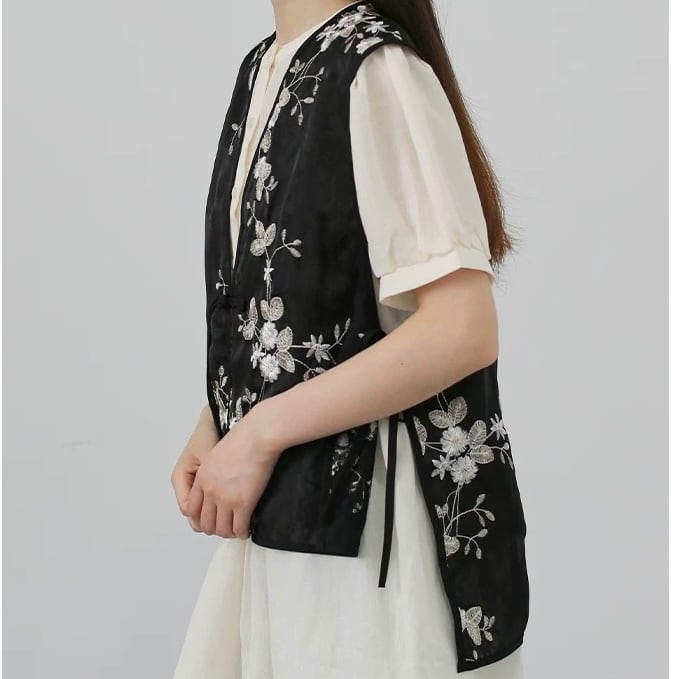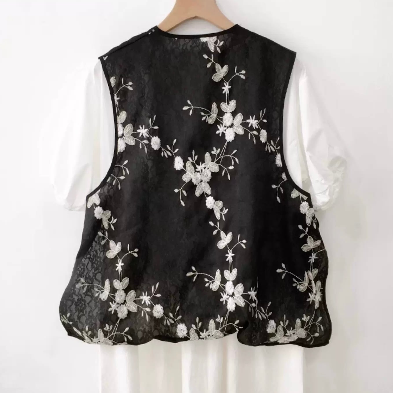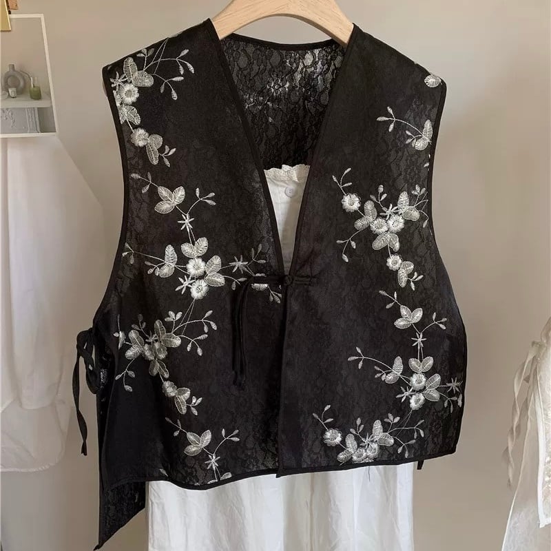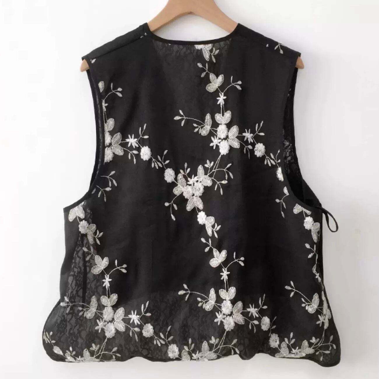 フラワー刺繍レースシアーベスト fu0666