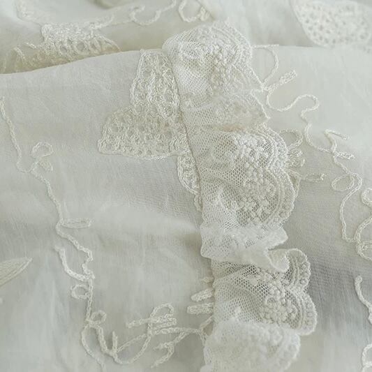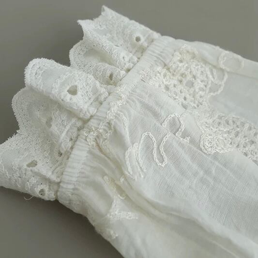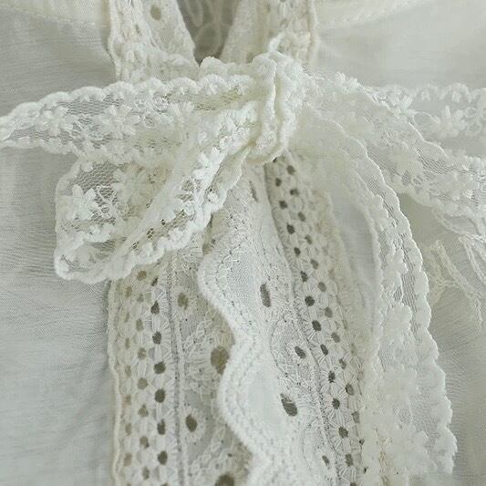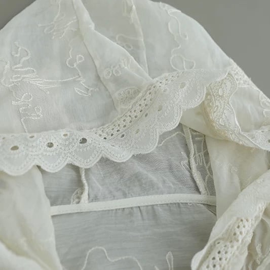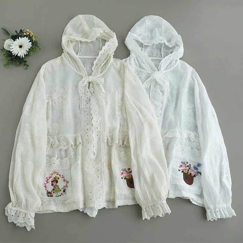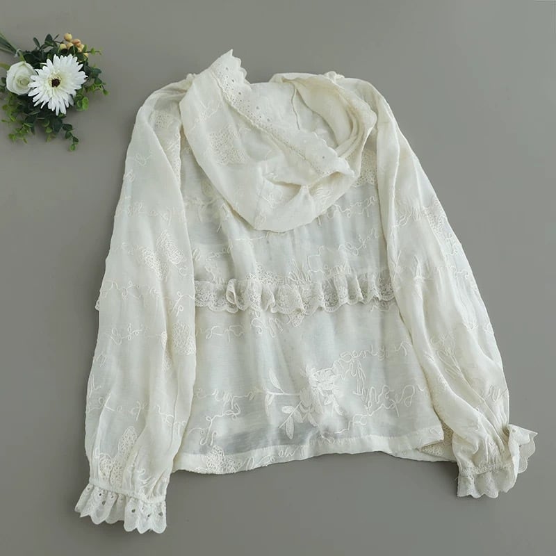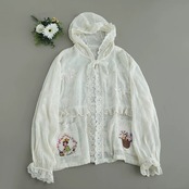繊細なレースとふっくら袖が目を引く、ナチュラルテイストの前開きパーカーです。