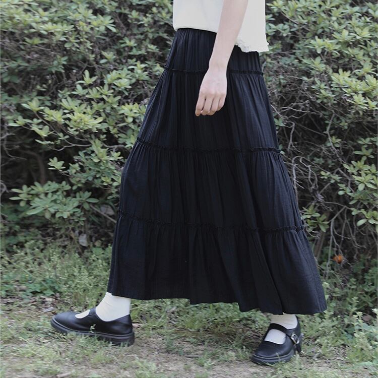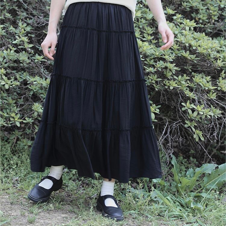 フレアティアードロングスカート 2color fu0721