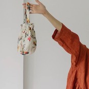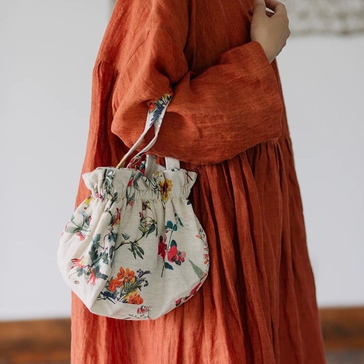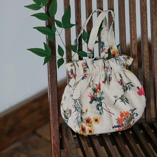 お花模様の綿麻巾着バッグ fu0730