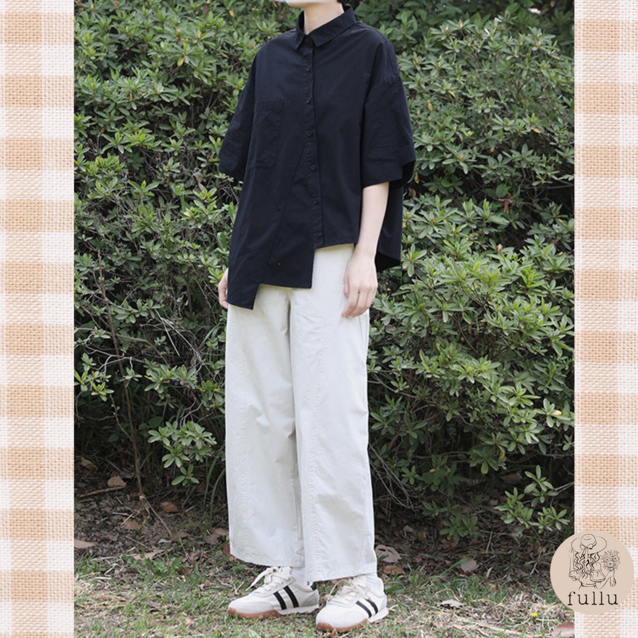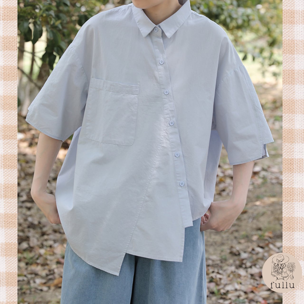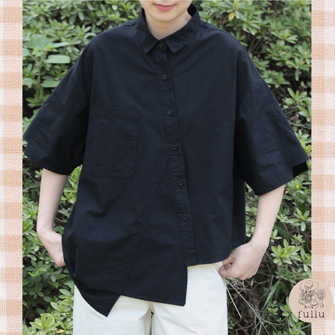 アシンメトリーデザイン前開きシャツ 4color fu0731