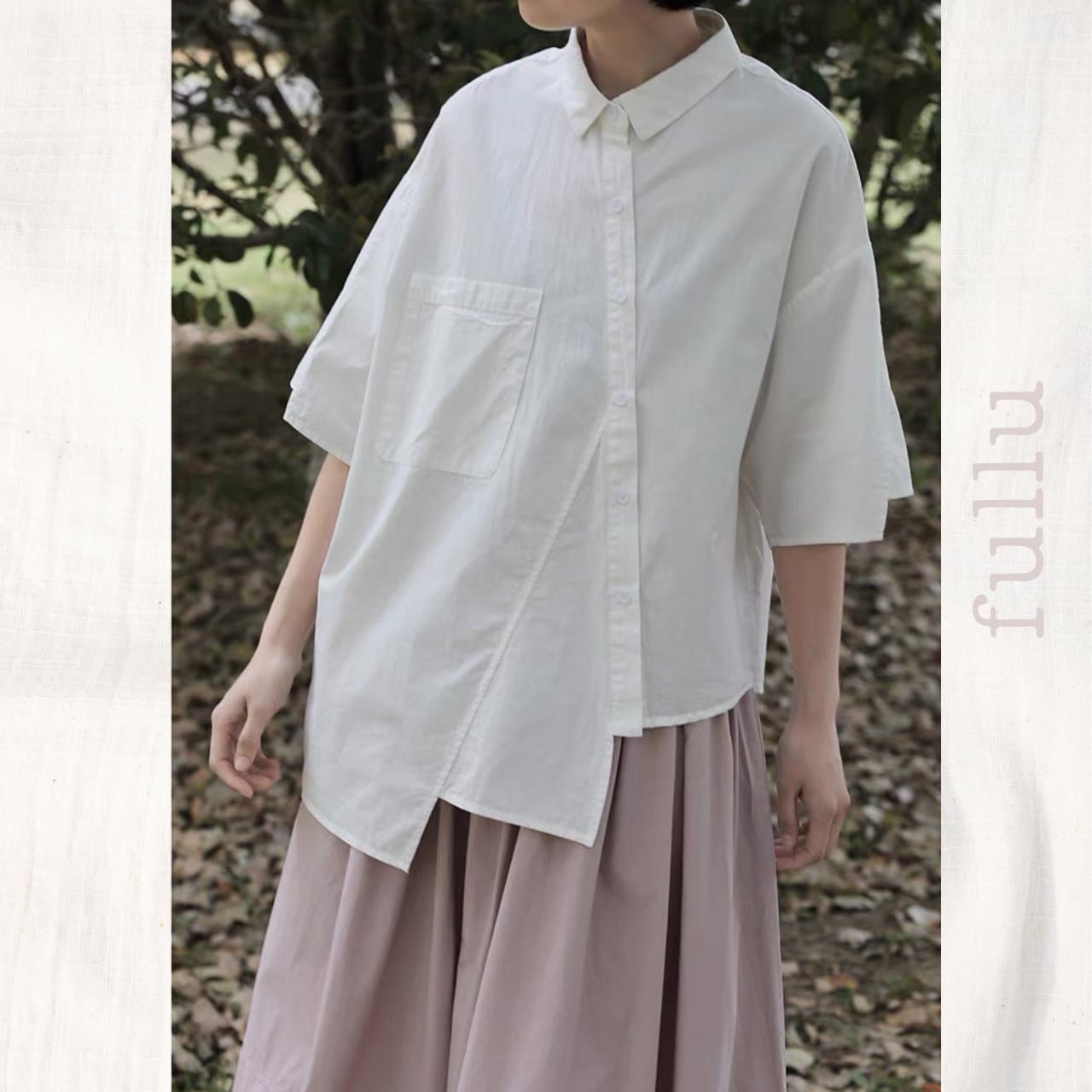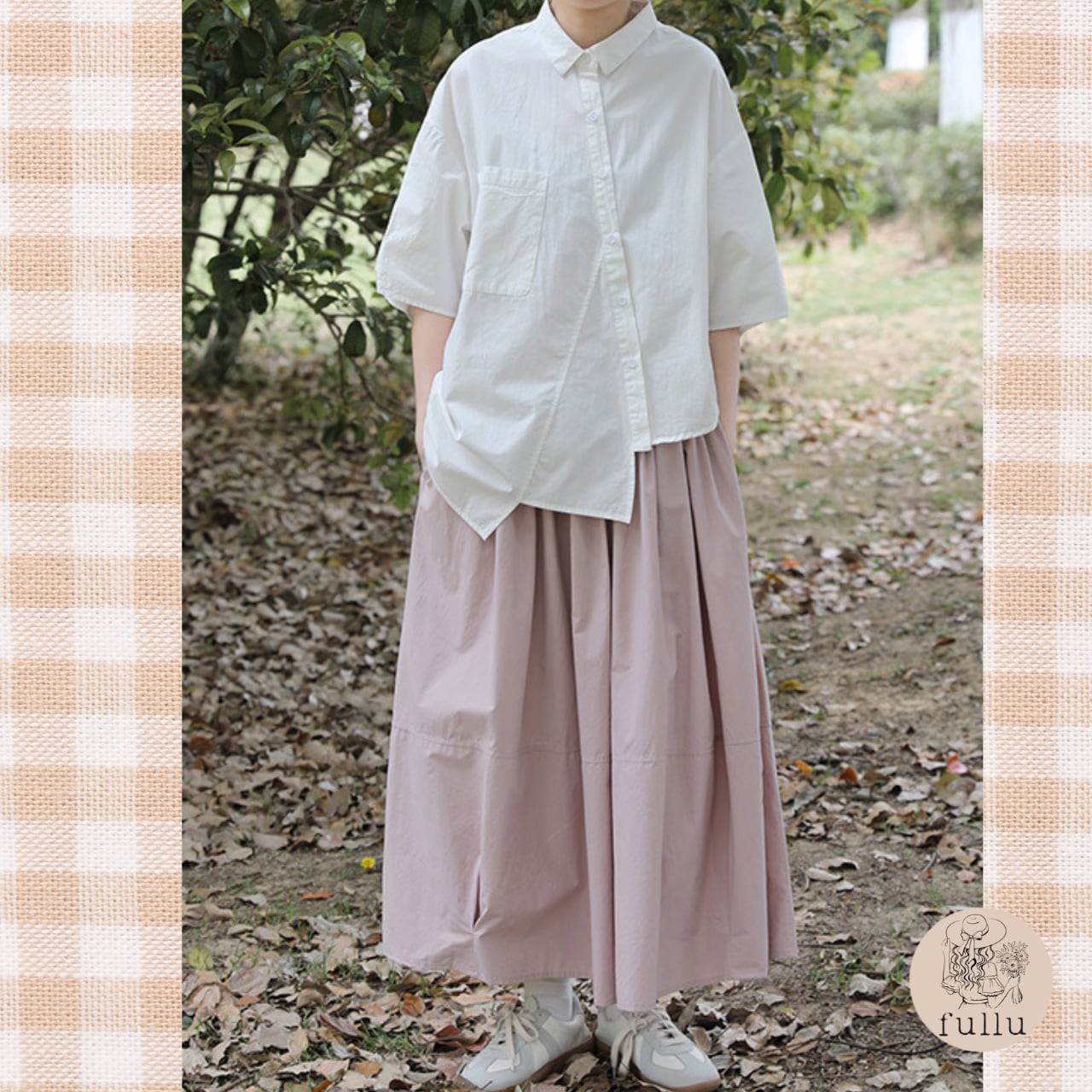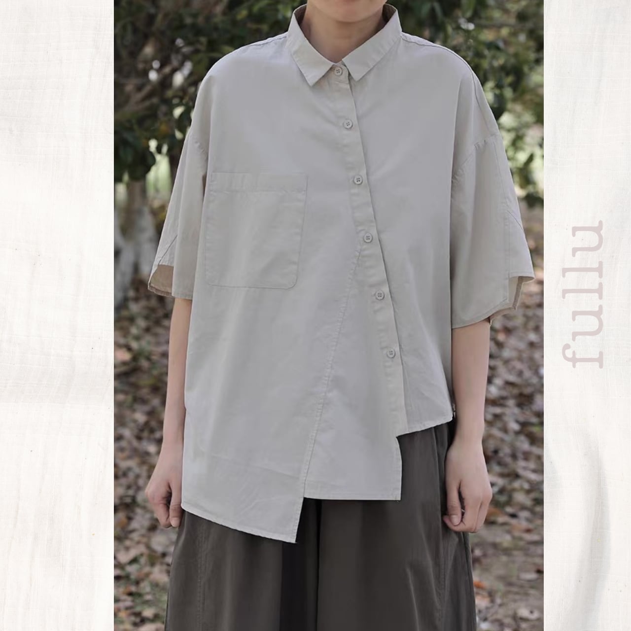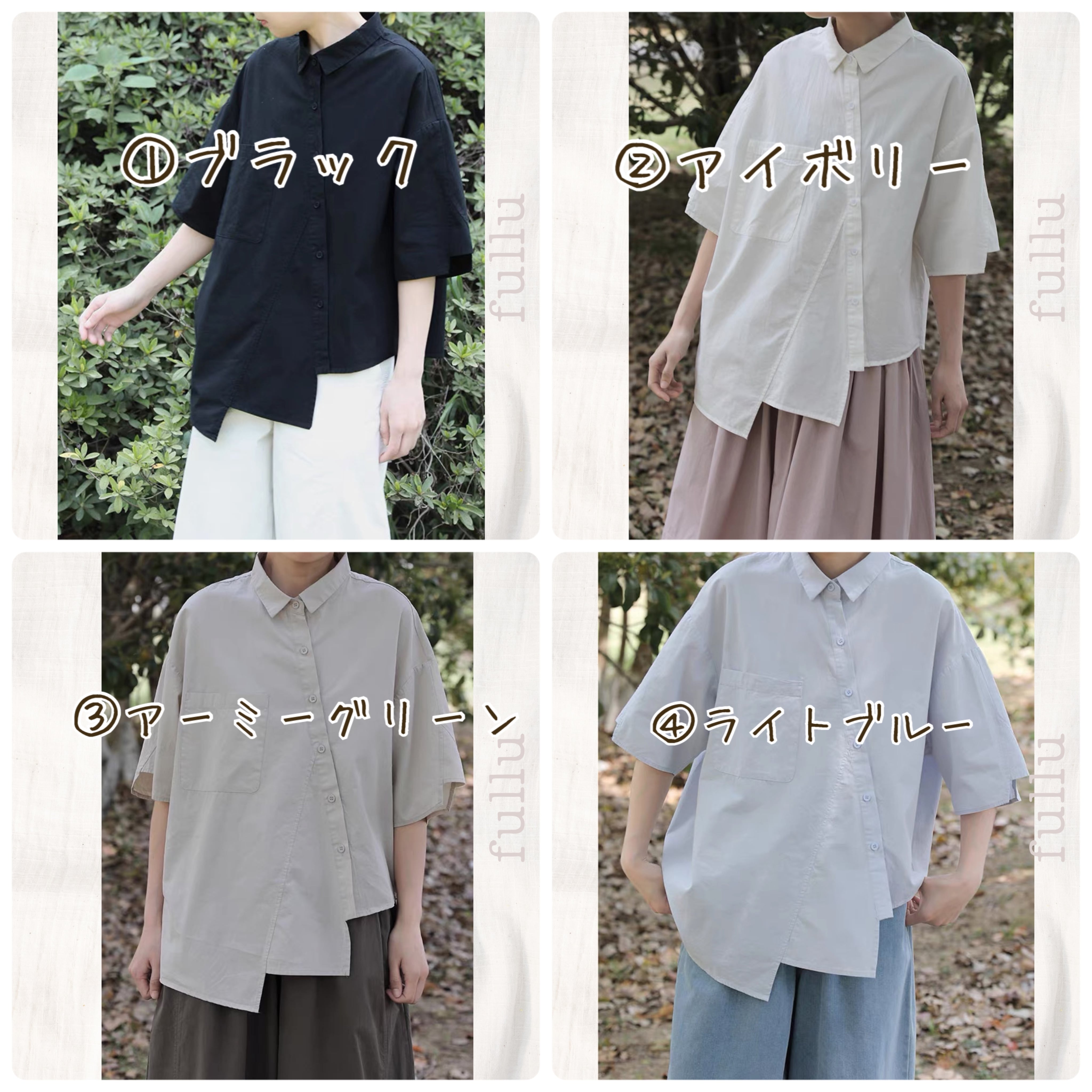 アシンメトリーデザイン前開きシャツ 4color fu0731