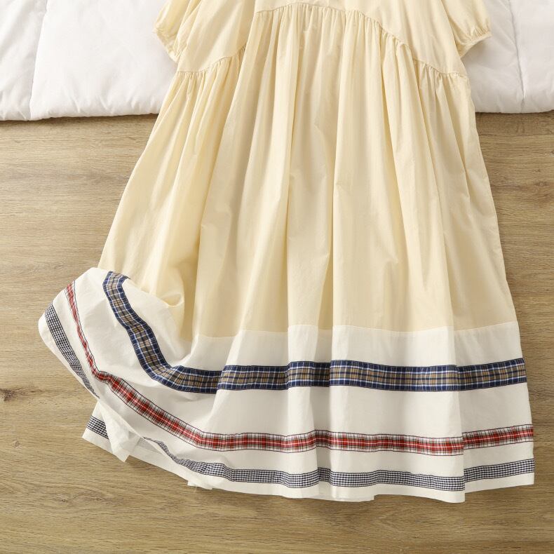 裾のチェックラインがアクセントになった、ナチュラルかわいいワンピース。