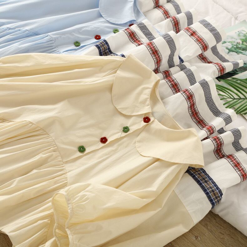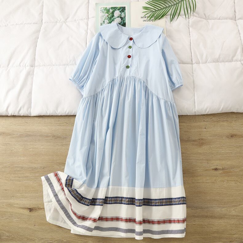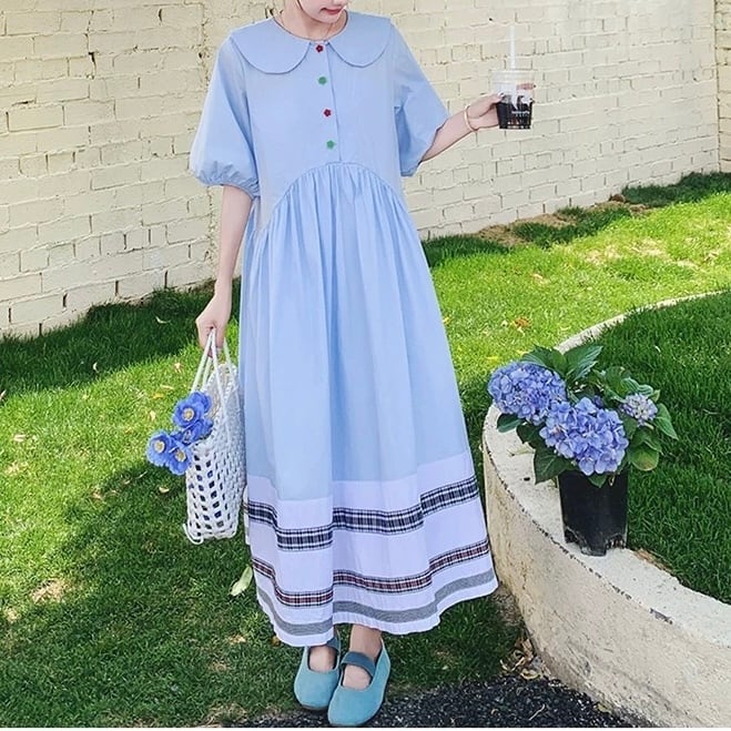 カントリーチェックライン丸襟配色ボタンワンピース 2color fu0738