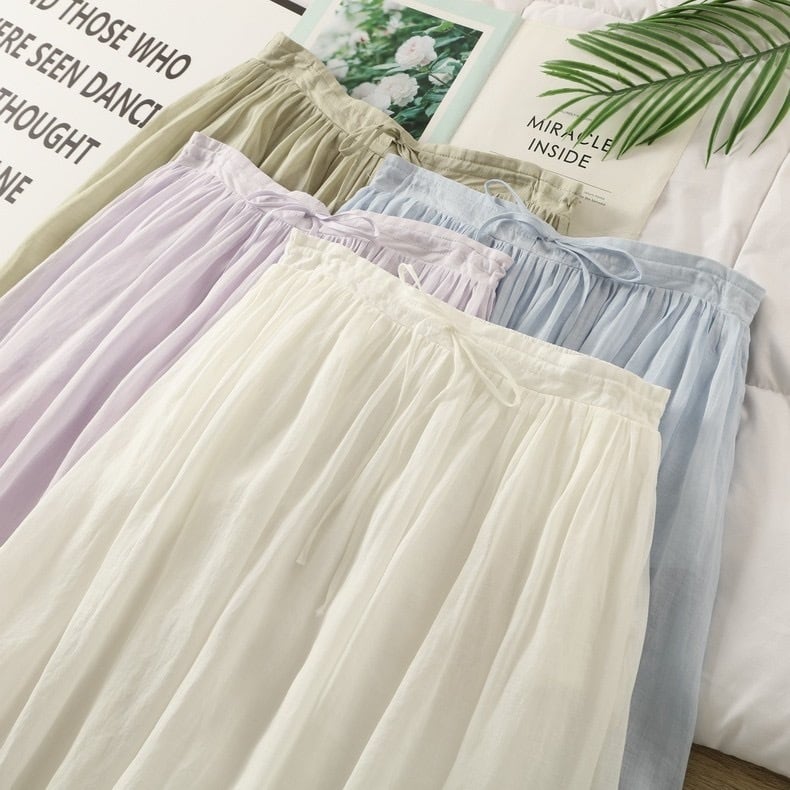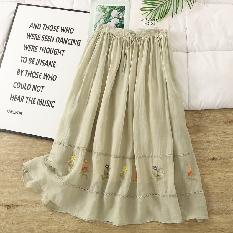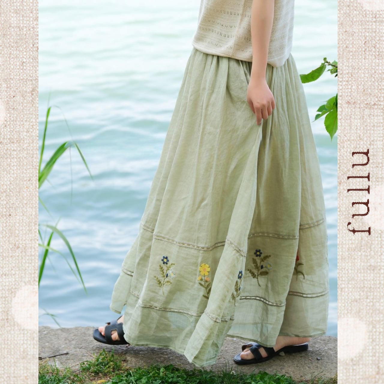 軽やかなラミー100%素材で仕立てた、風通しのよいロングスカート。