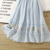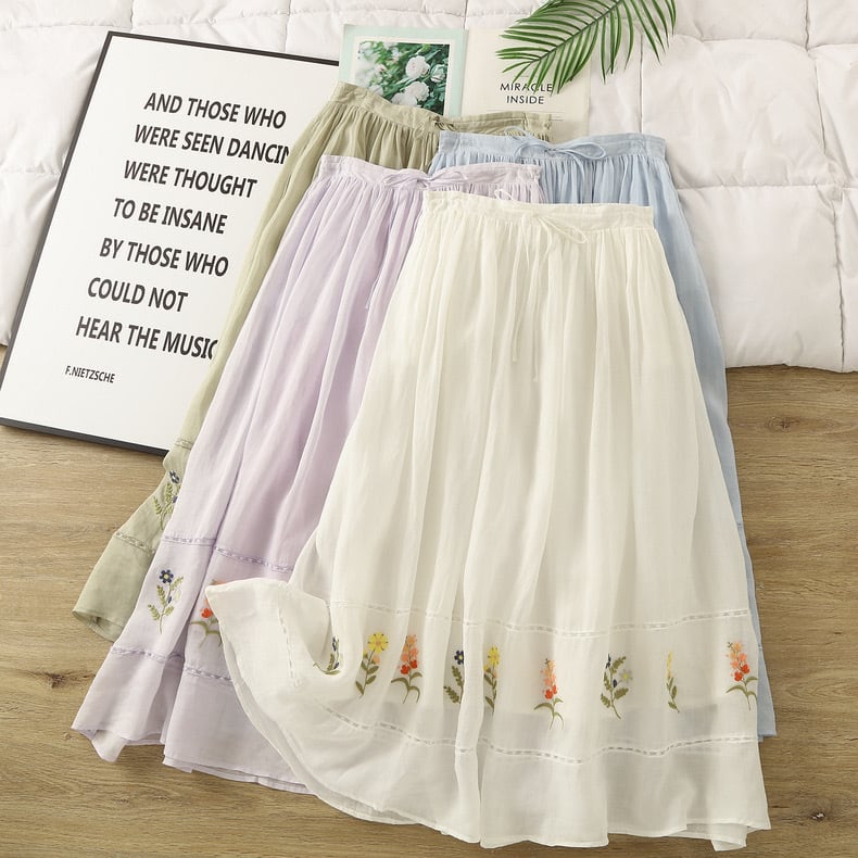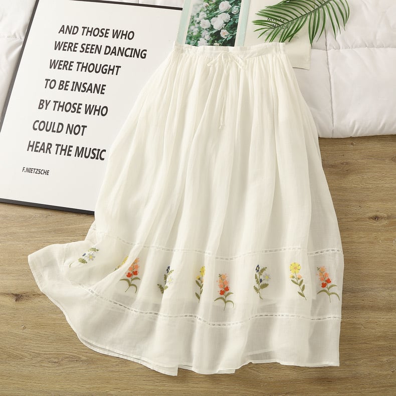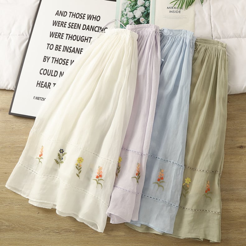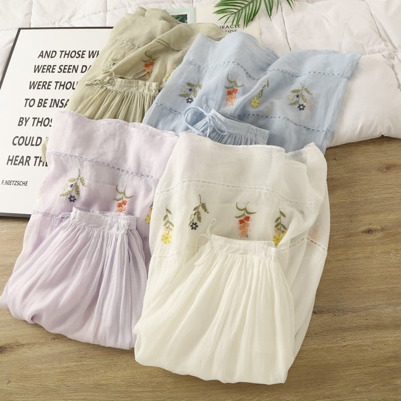 裾まわりには、どこか懐かしい草花の刺繍をあしらい、さりげない彩りを添えました。