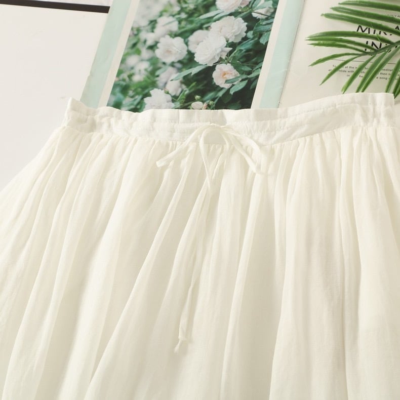 ふっくらとギャザーを寄せたシルエットが、動くたびにやさしく揺れ、季節の風を感じる装いに。