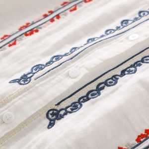 フロントと袖にあしらわれた華やかな刺繍が目を引く、ナチュラルな雰囲気のブラウスです。