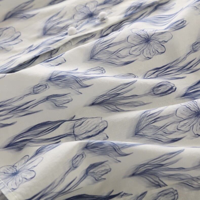 繊細なタッチで描かれたブルーの草花模様が、爽やかな印象を与えてくれます。