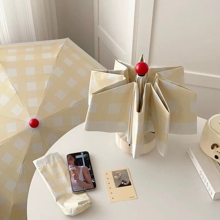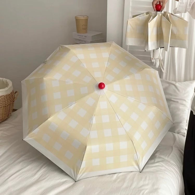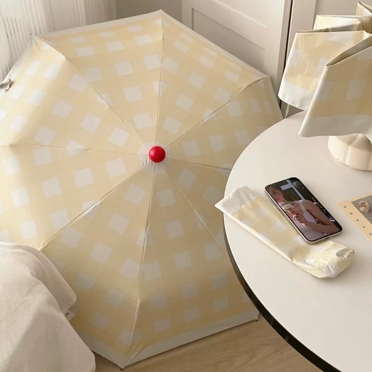 パステルカラーのギンガムチェック柄が可愛らしい晴雨兼用傘。