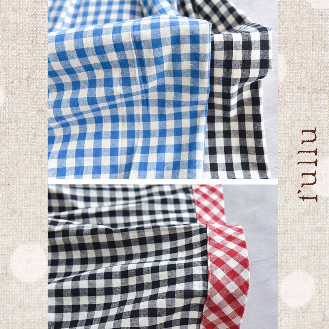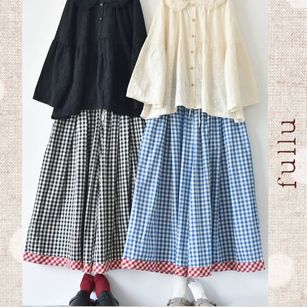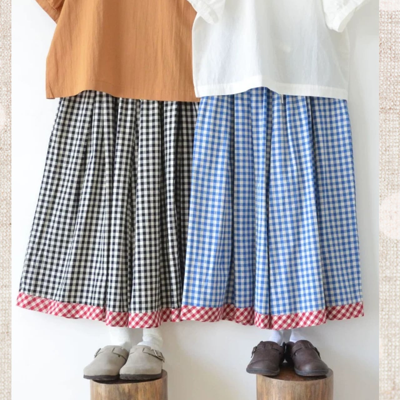 ギンガムチェックの裾に、赤のチェックをプラスした