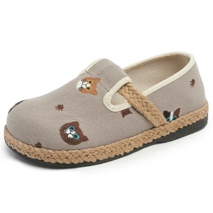 素朴なキャンバス地に映える猫の刺繍が、足元にやさしい個性を添えます。