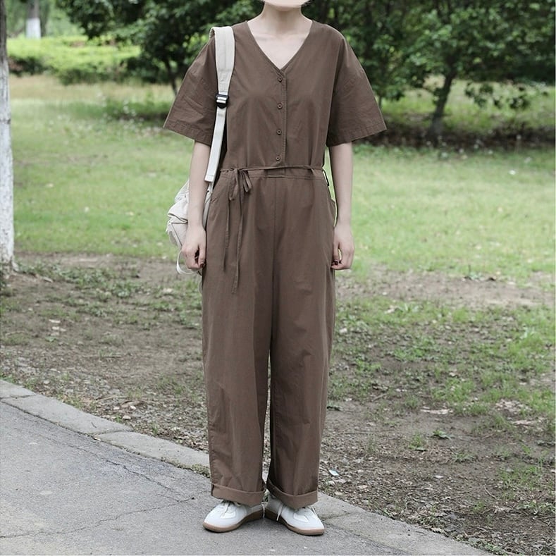 ゆったりとしたシルエットで、着るだけでこなれ感のあるオールインワン。