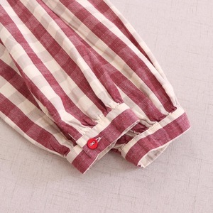 大きめチェックと細かめストライプを組み合わせた、遊び心あるデザインのワンピースです。