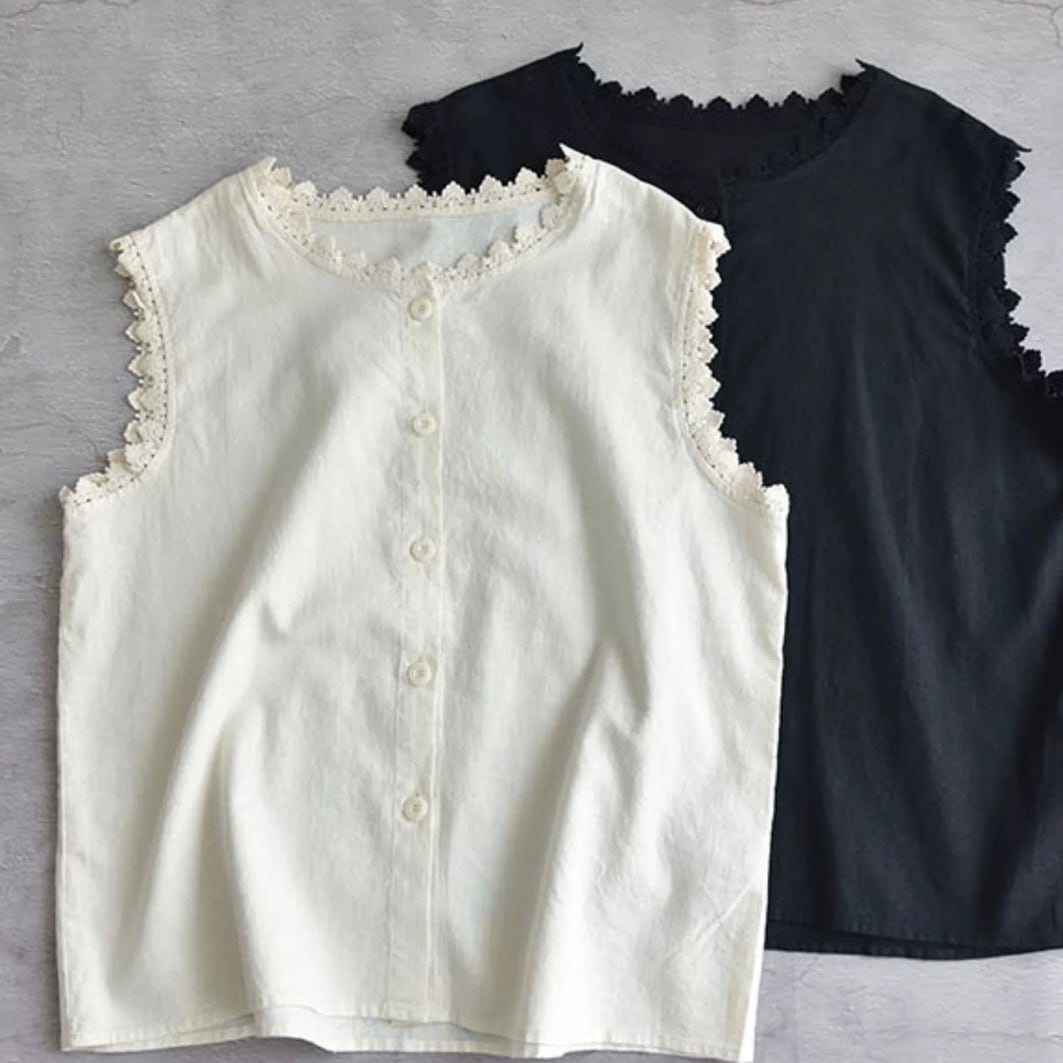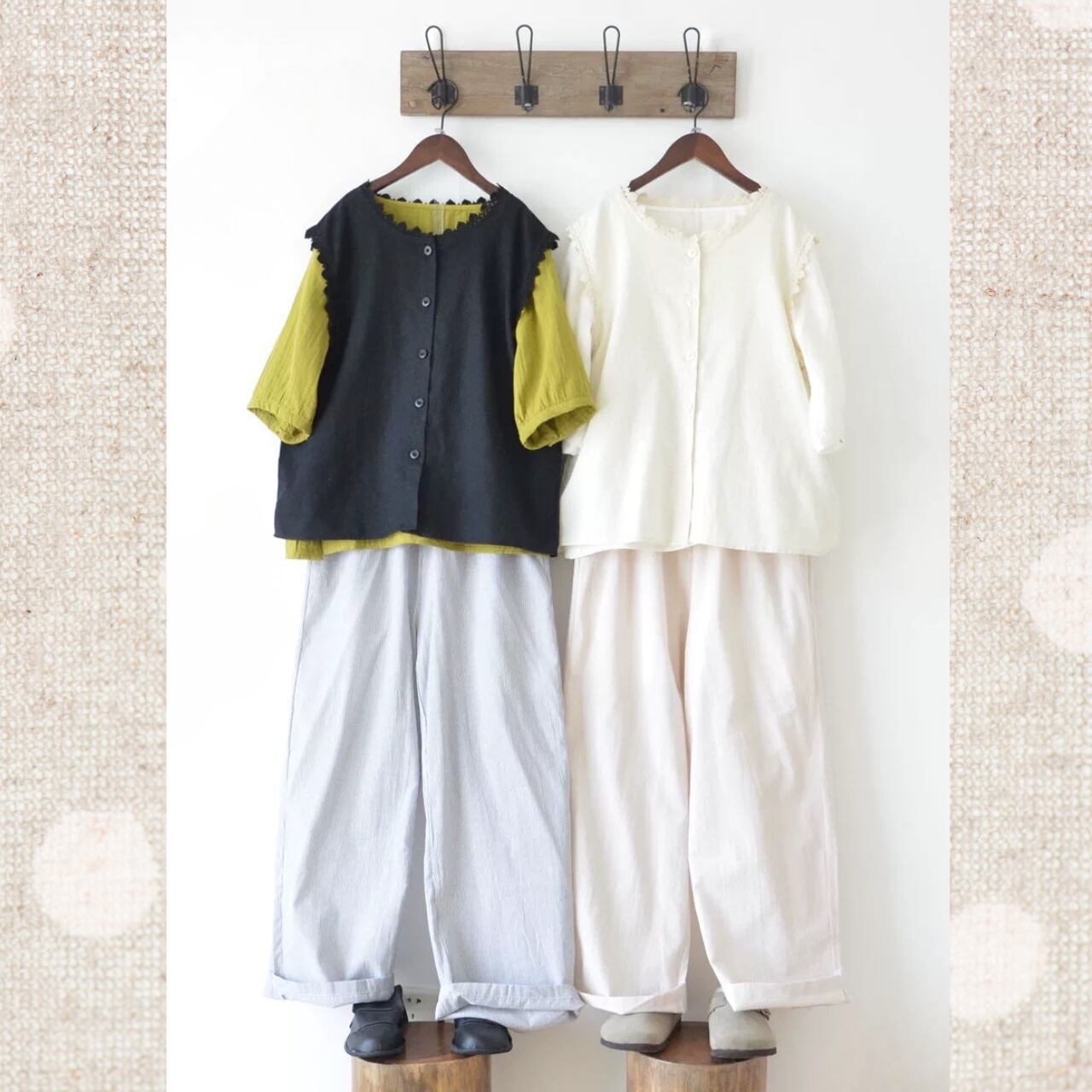 ナチュラルな綿麻素材を使った、重ね着にぴったりのベストです。
