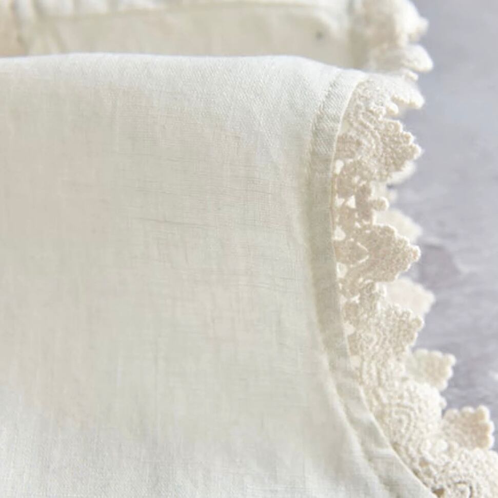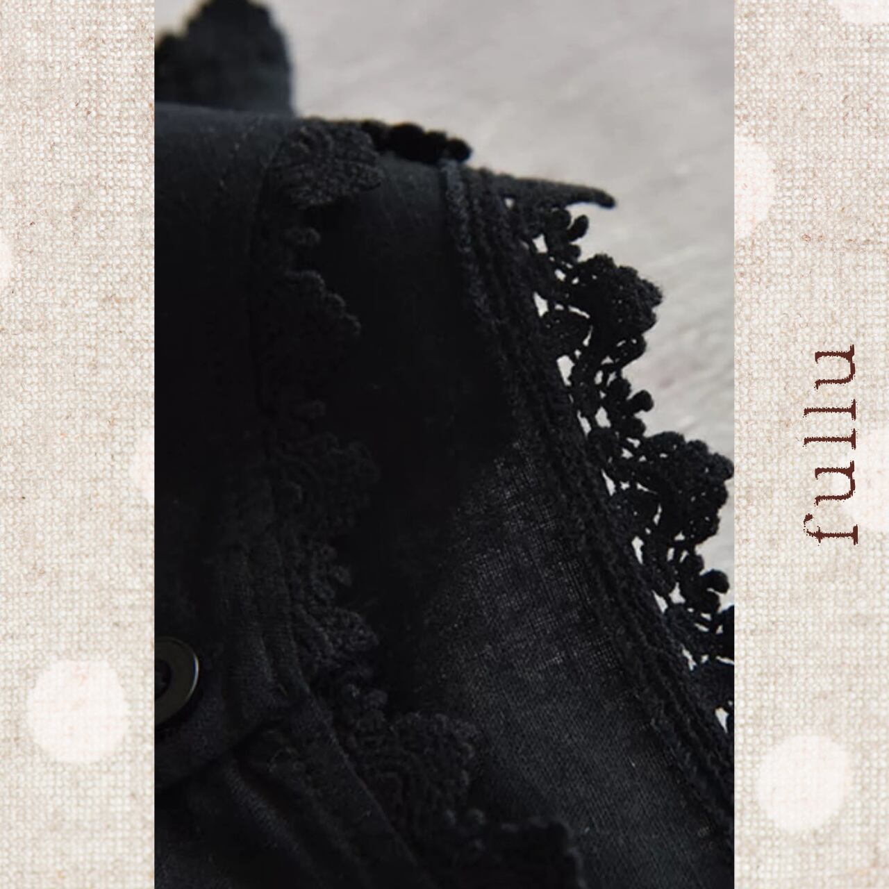 襟ぐりと袖ぐりにあしらわれたレースがさりげないアクセントになり、シンプルなコーディネートに表情をプラス。