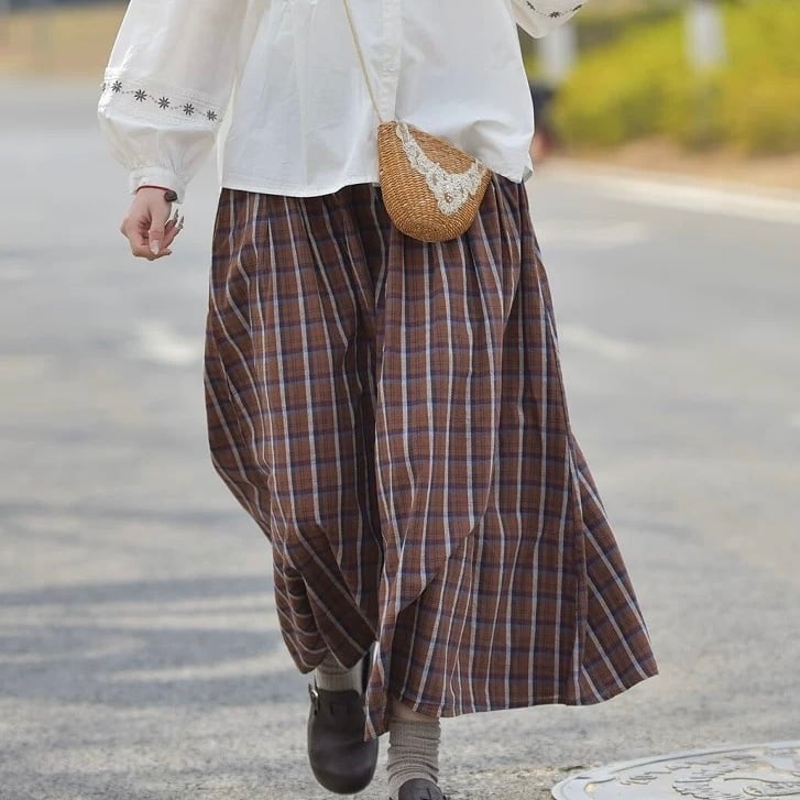 クラシカルなチェック柄のロングスカート。