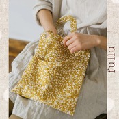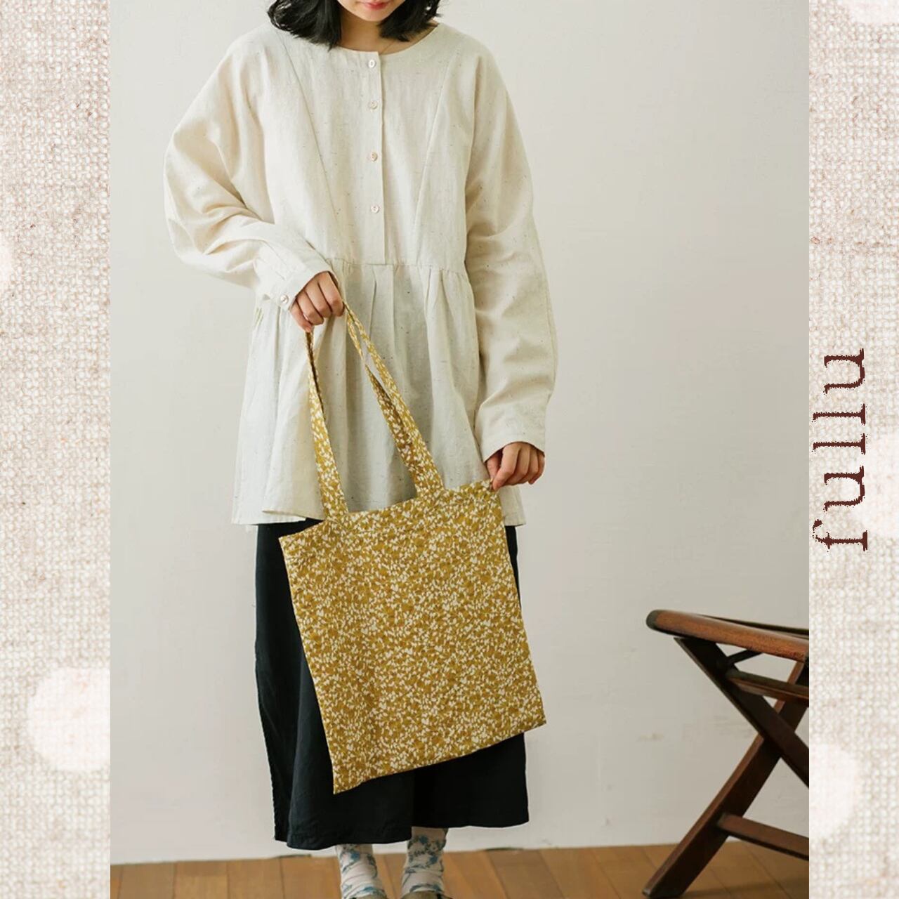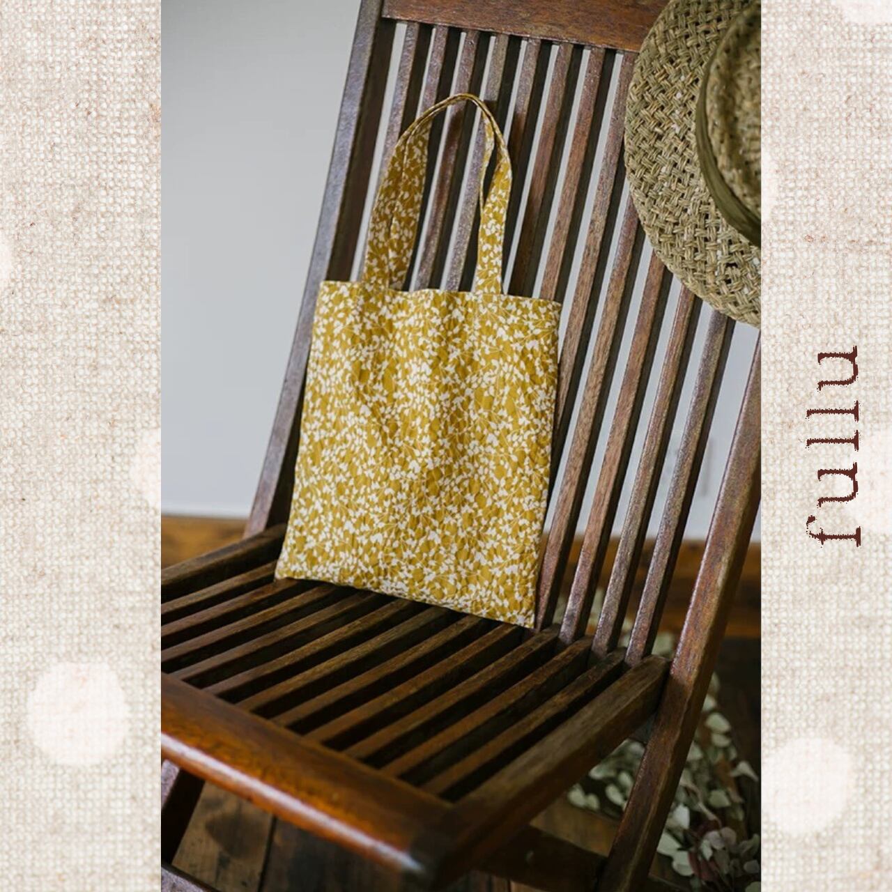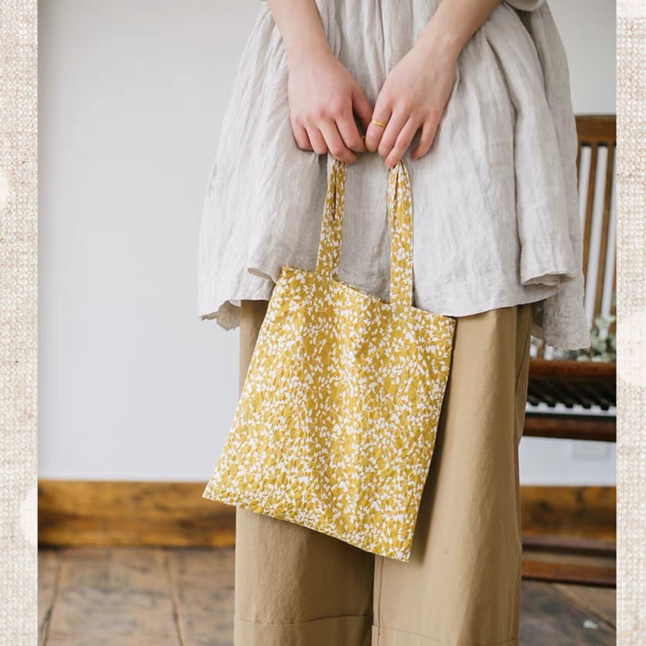 持つだけで気分が明るくなる、マスタードイエローの小花柄トートバッグ。