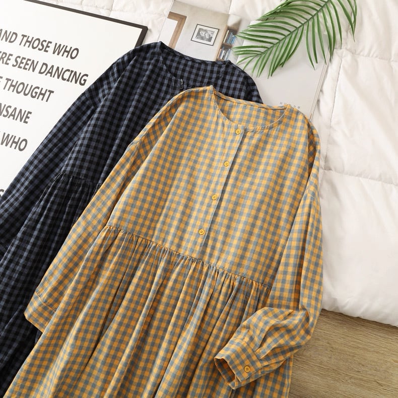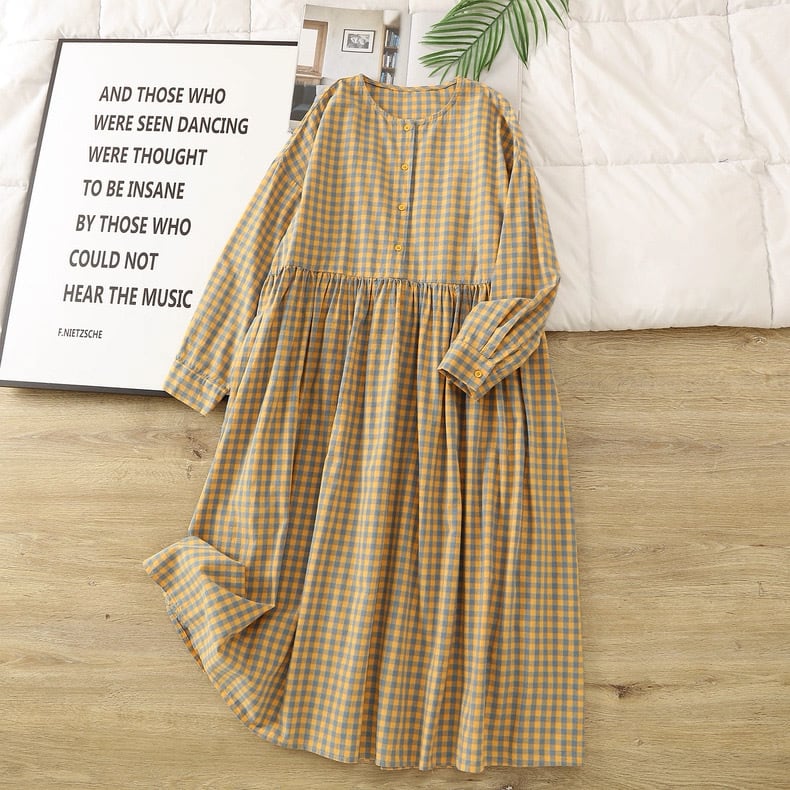 シンプルながらも愛らしいギンガムチェック柄のコットンワンピース。