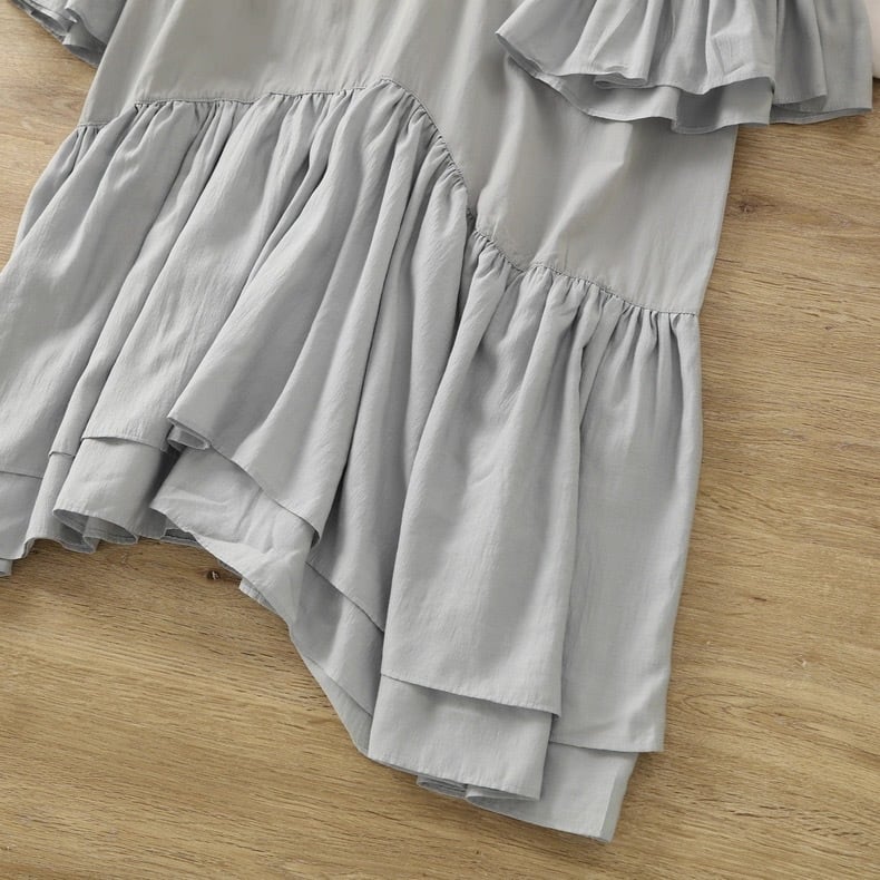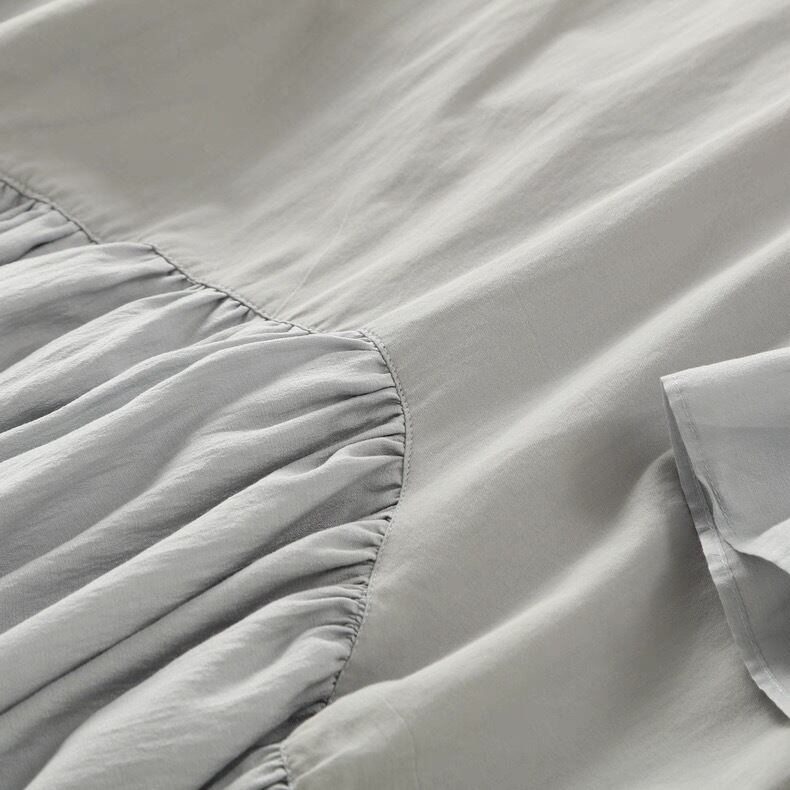 すとんとしたシルエットに、裾の切替デザインで動きが加わり、シンプルながらも表情のある一枚に仕上がっています。