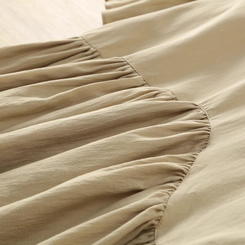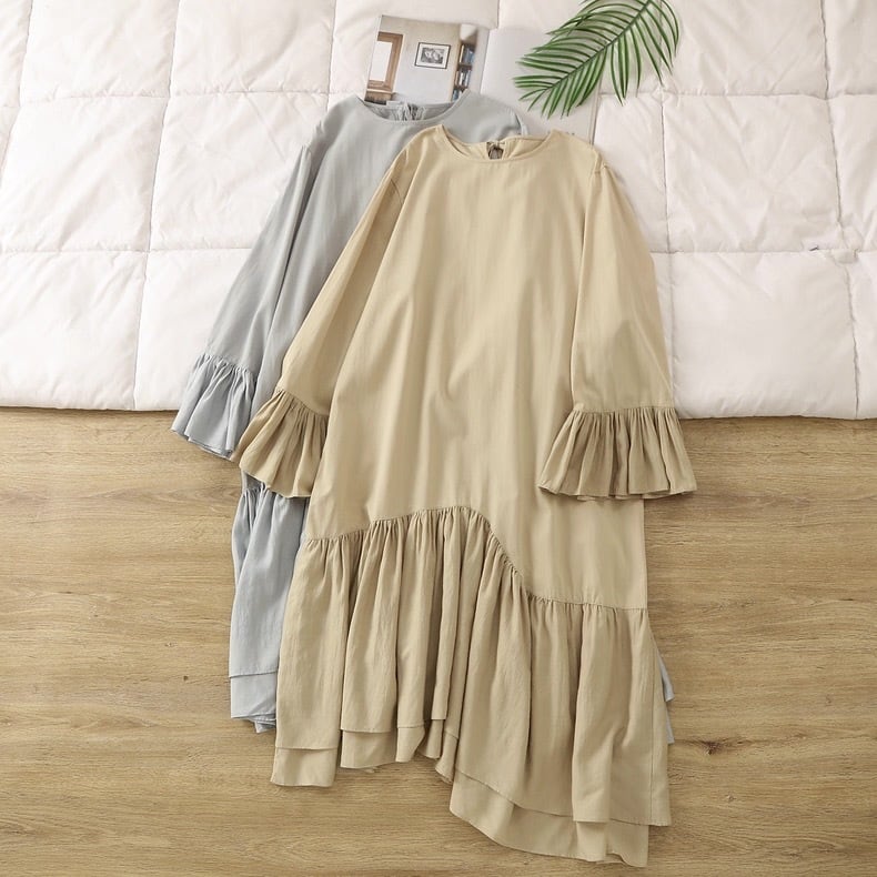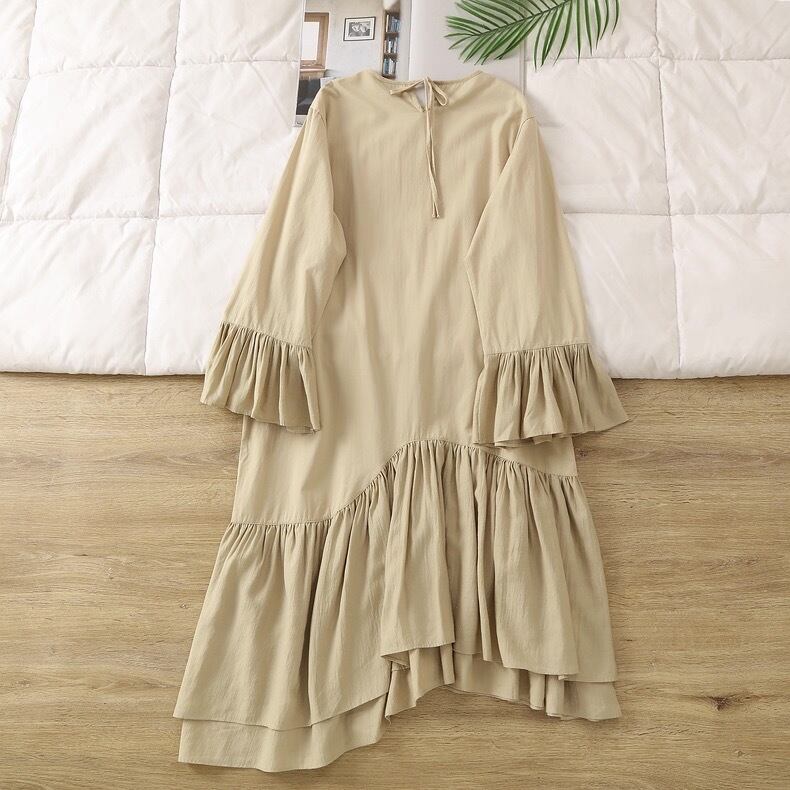 フリル袖と切替デザインのナチュラルワンピース 2color fu0827