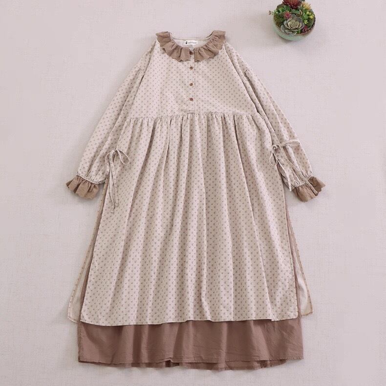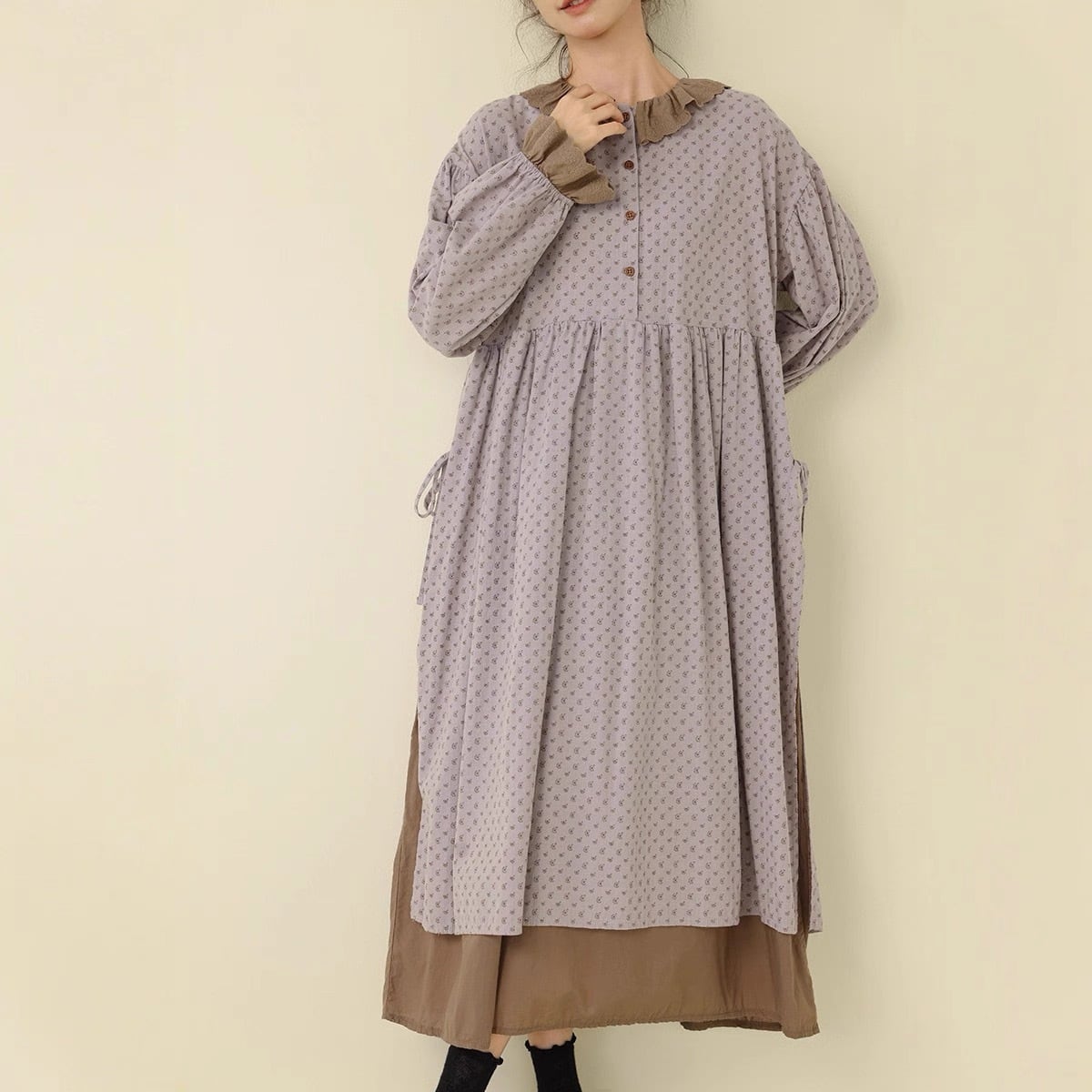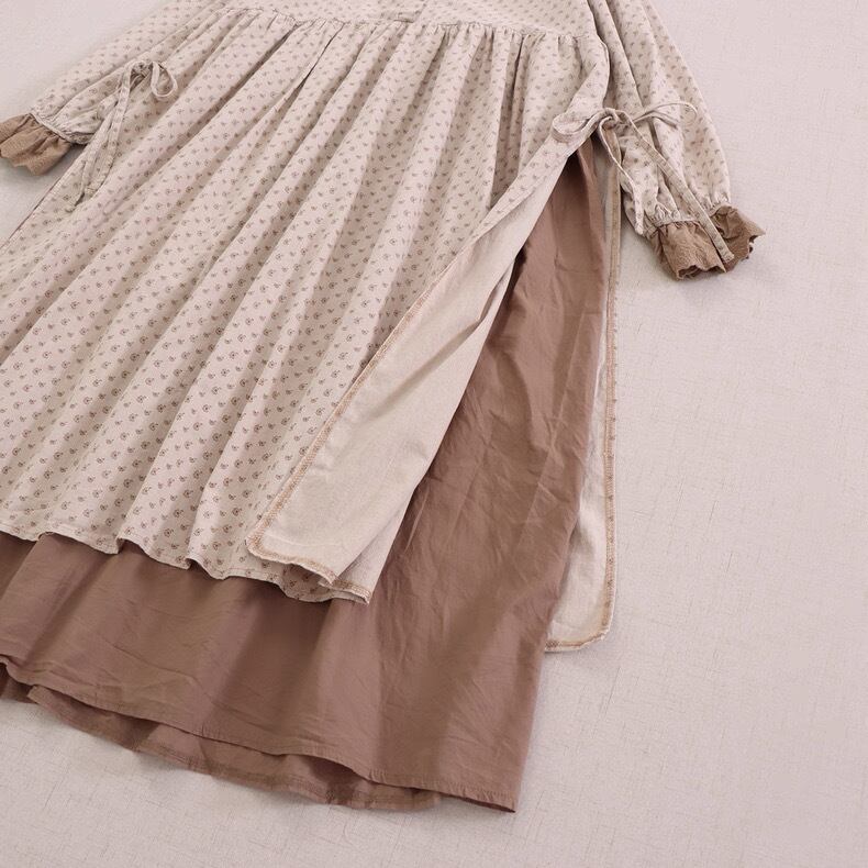 小花柄コットン重ね着風ワンピース 3color fu0834