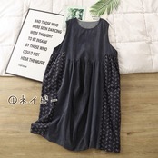 デニム切り替えパッチワーク風ワンピース 2color fu0836