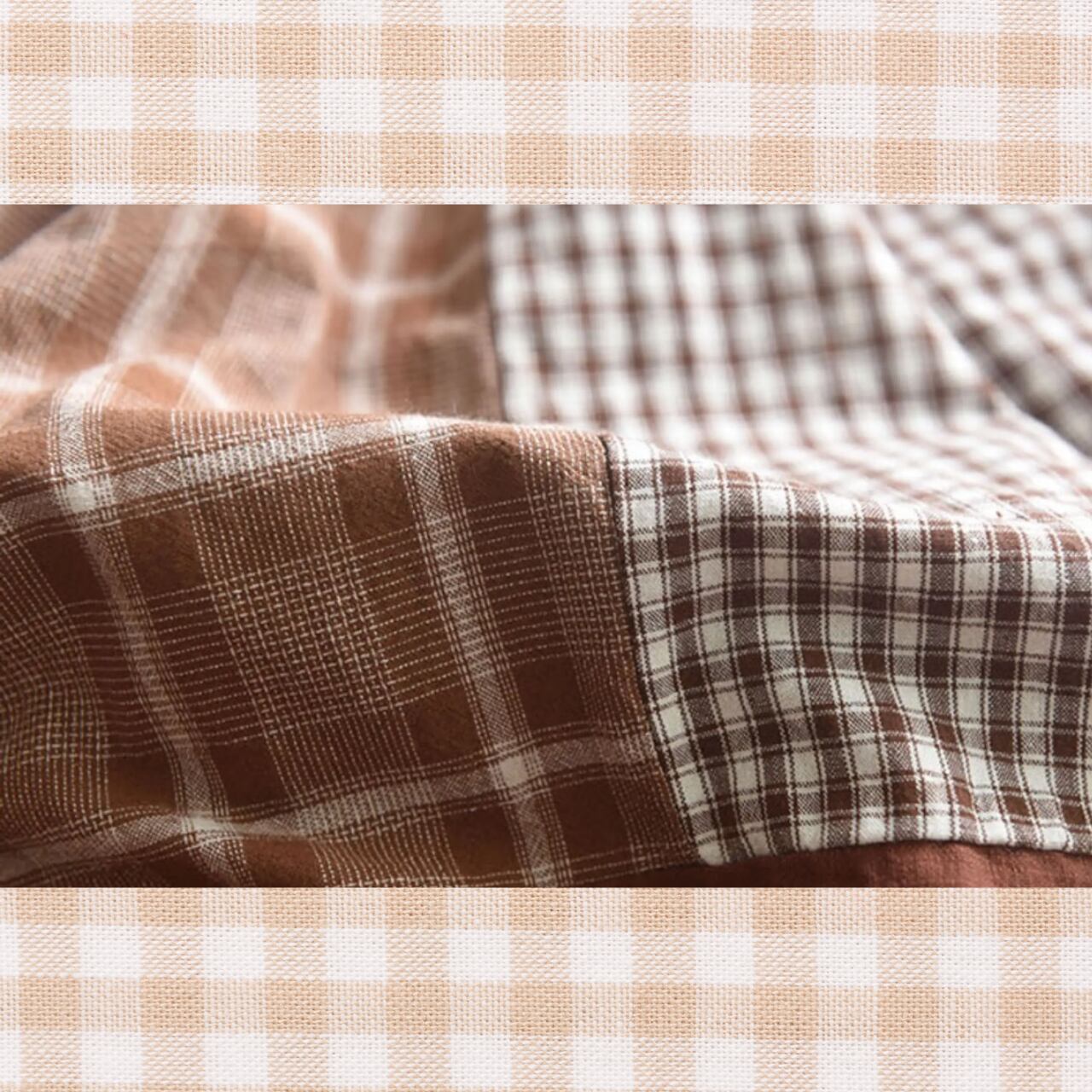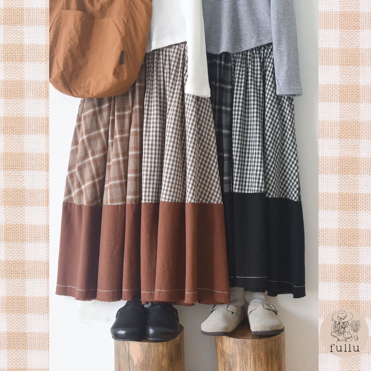 異なるチェック柄を組み合わせた切替デザインが目を引くロングスカート。