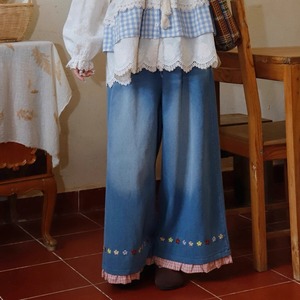 裾フラワー刺繍ワイドデニムパンツ 2color fu0839