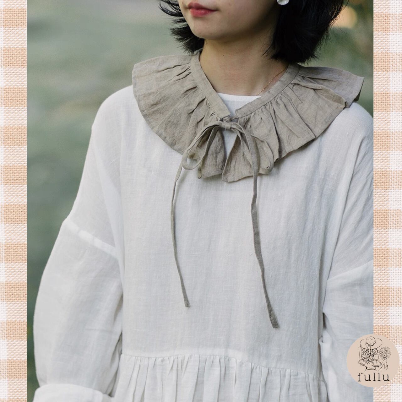 シンプルなコーデにアクセントを添えるリネン100%のつけ襟です。