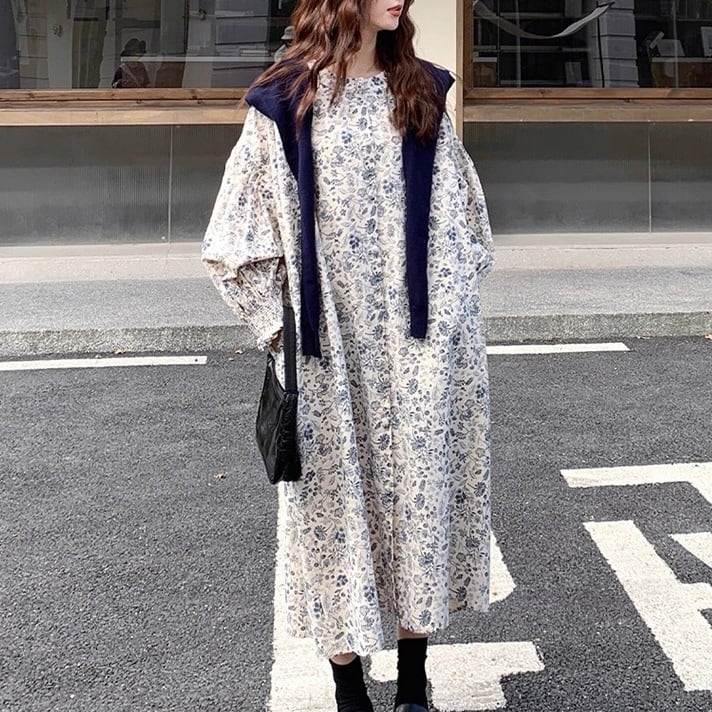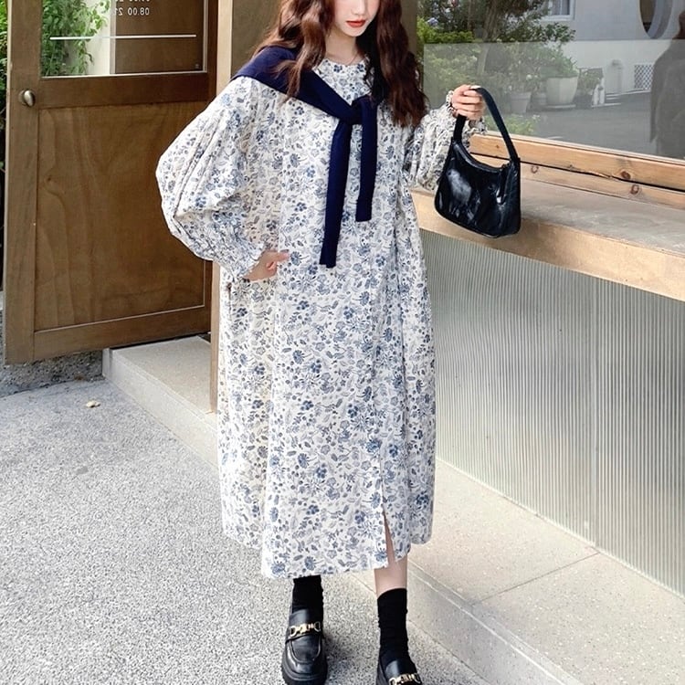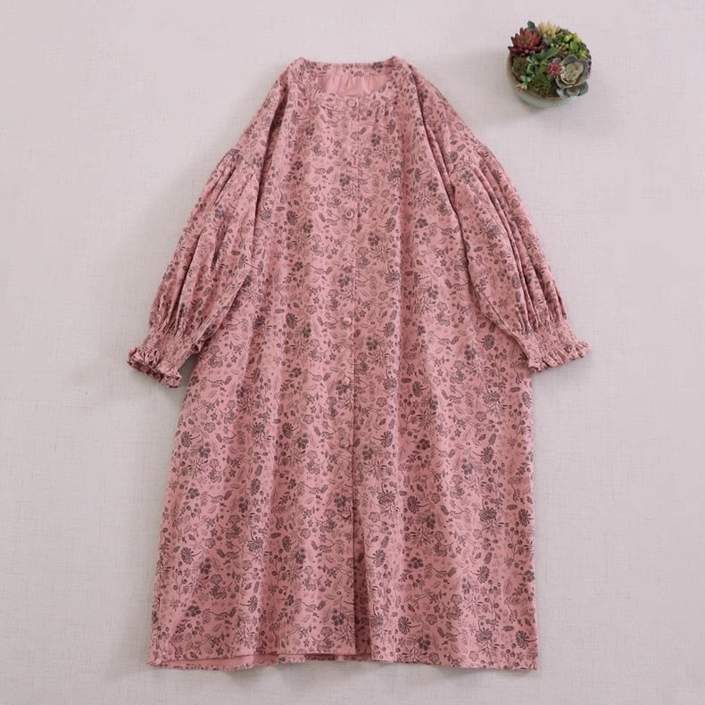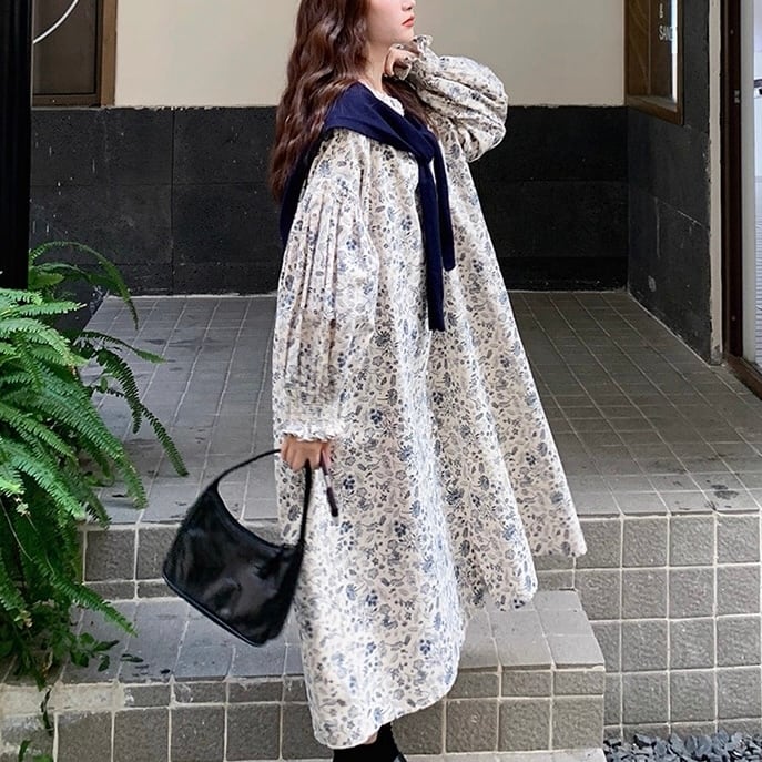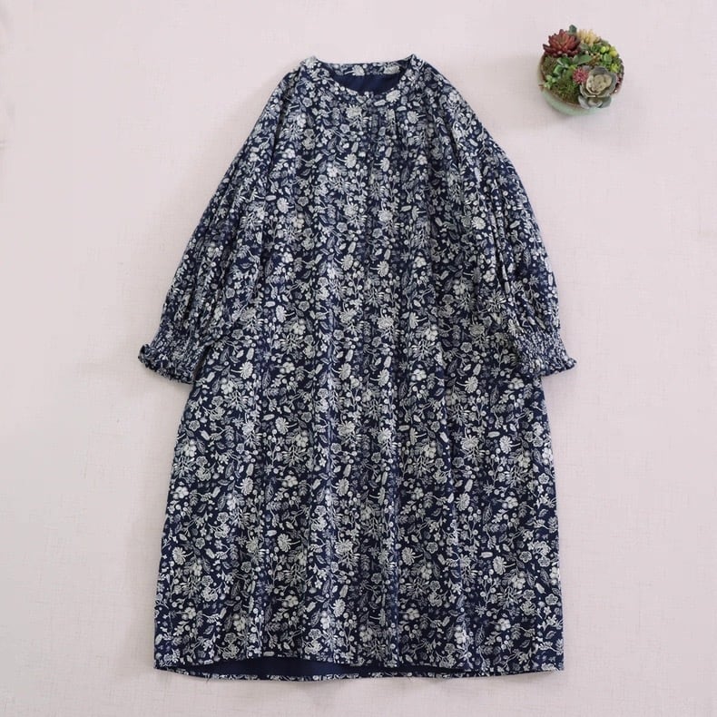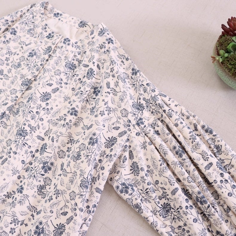 やわらかな風合いのコットンに、小さな花柄をちりばめたワンピース。