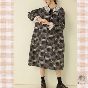 大きめのレース襟と袖口のレースで、顔周りも手元も一気に華やぎます。