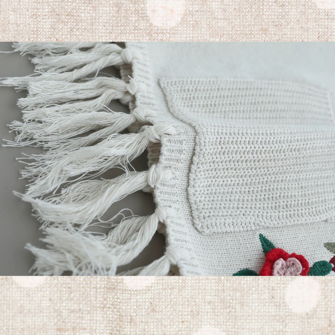 フラワーモチーフが可愛い花刺繍フリンジカーディガンシンプルなコーディネートにさらりと羽織るだけで、女性らしさを引き立ててくれます。