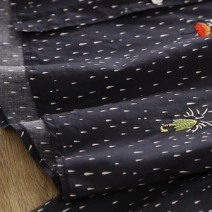 傘の刺繍と、雨粒のようなドット柄を組み合わせたシャツ。