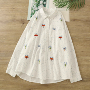 傘の刺繍と雨粒柄のシャツブラウス 2color fu0860