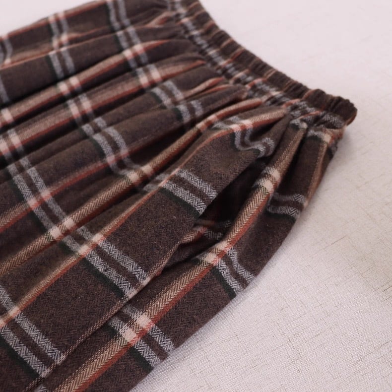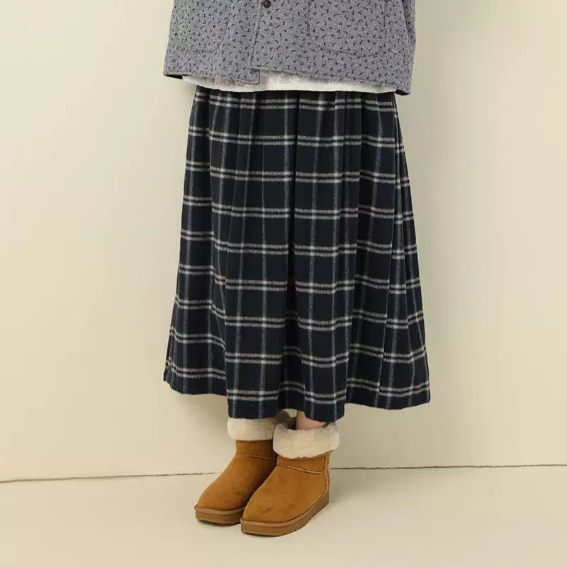 クラシックなチェック柄が印象的なロングスカート。