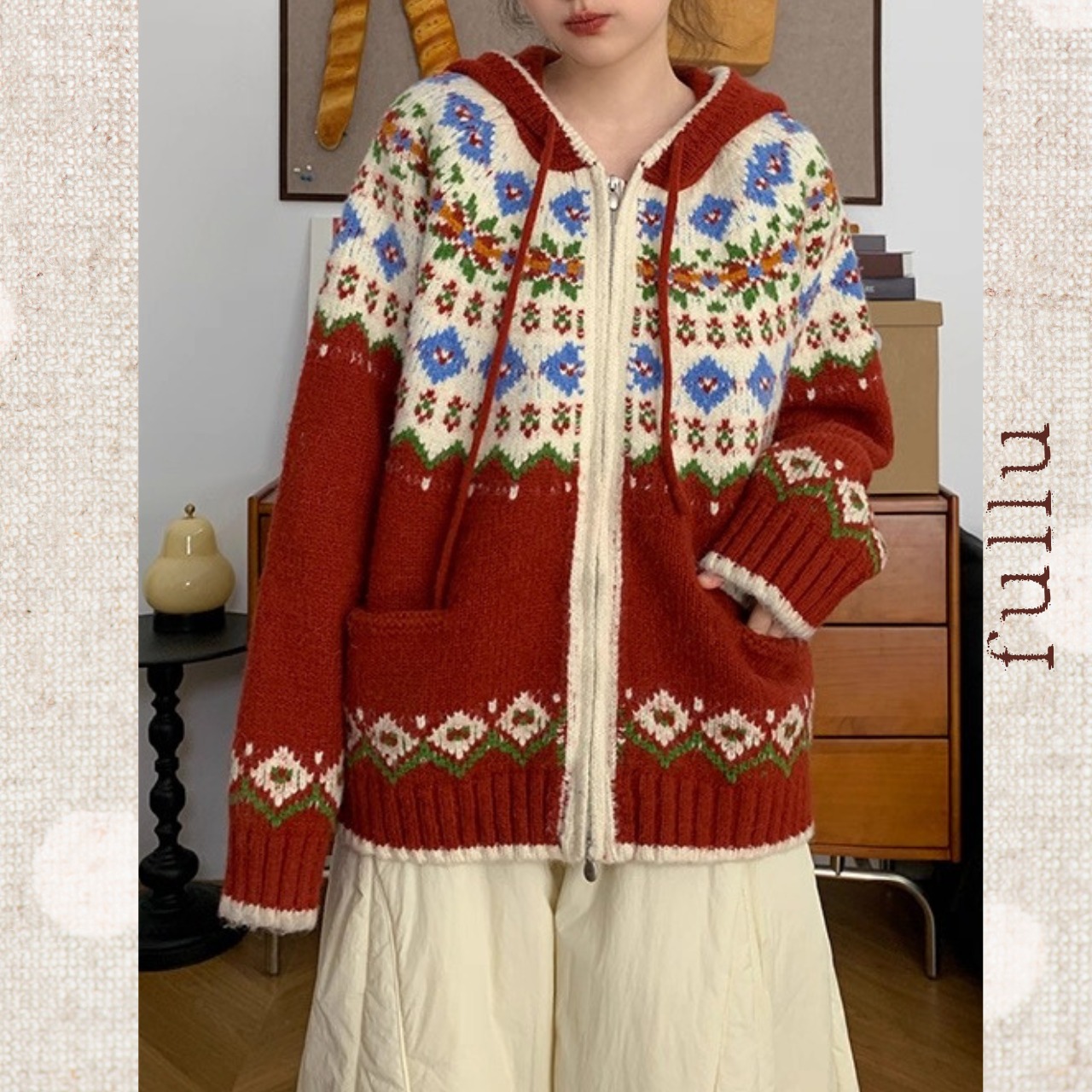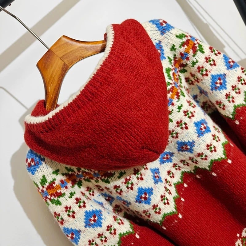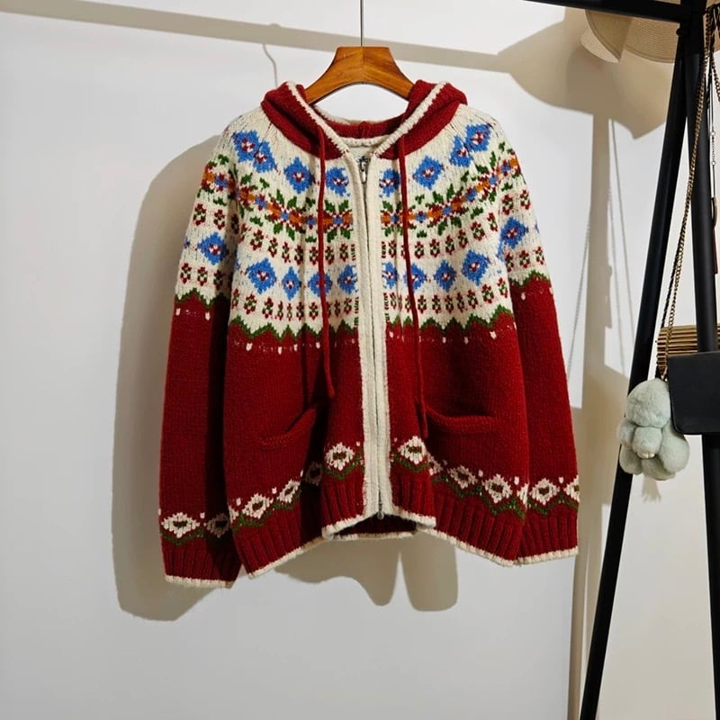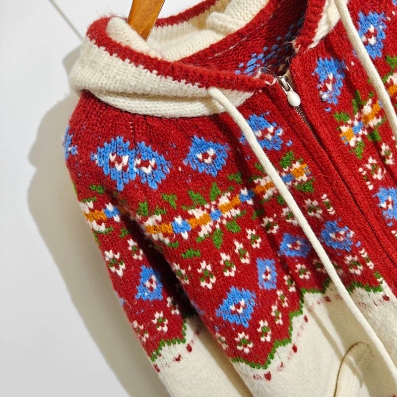 ノルディック柄フードジップカーディガン 2color fu0868
