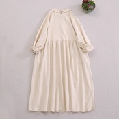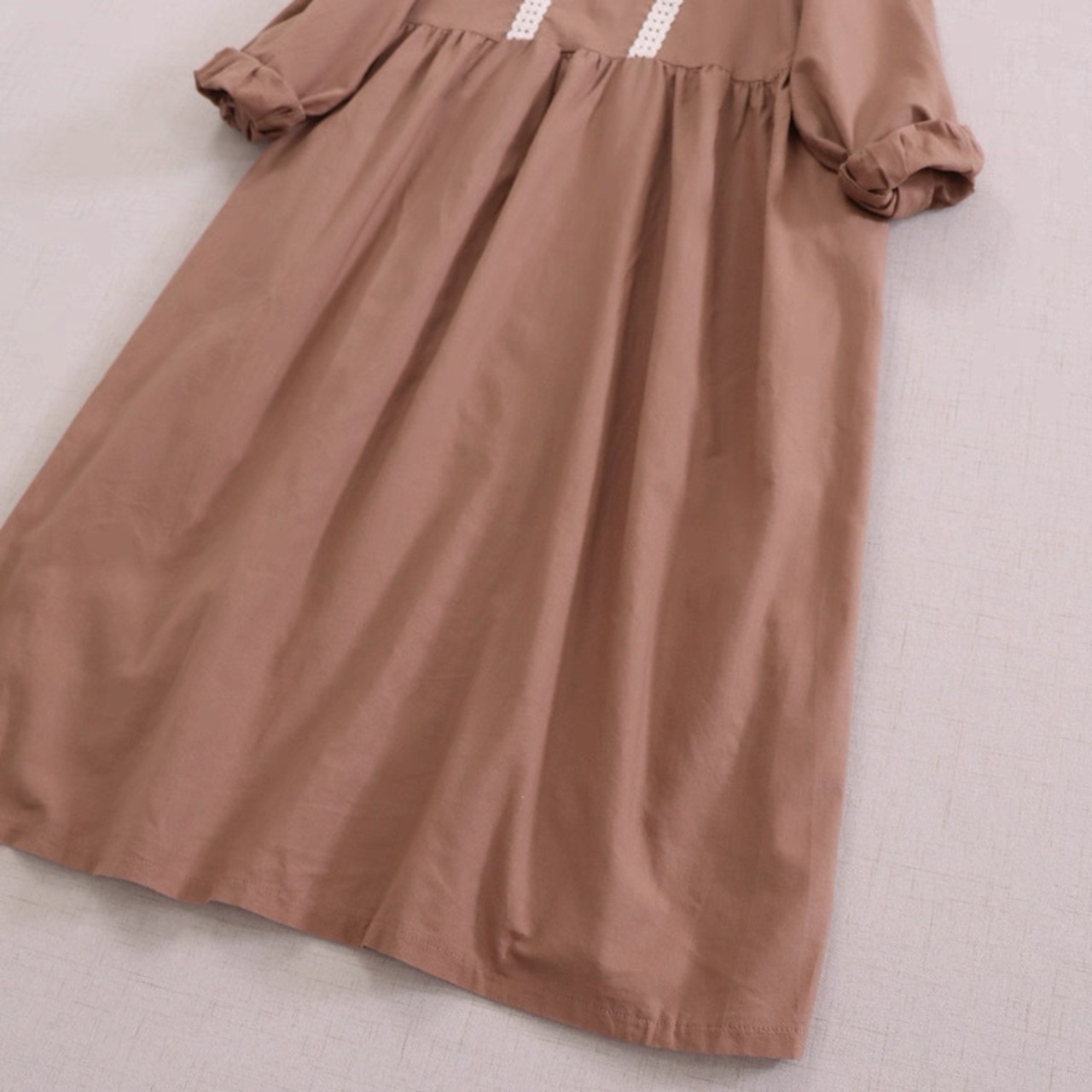 フロントに施されたレースが魅力のロングワンピース。ゆったりとしたシルエットが、リラックスした印象を与えつつ、ナチュラルな雰囲気を演出します。
