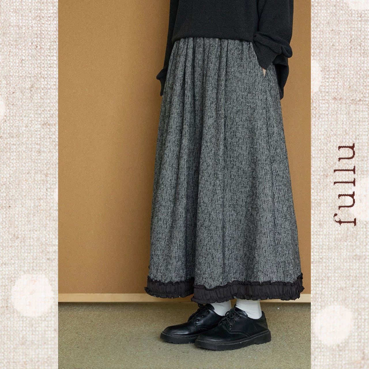 裾には異素材の切り替えを施し、さりげないアクセントをプラス。