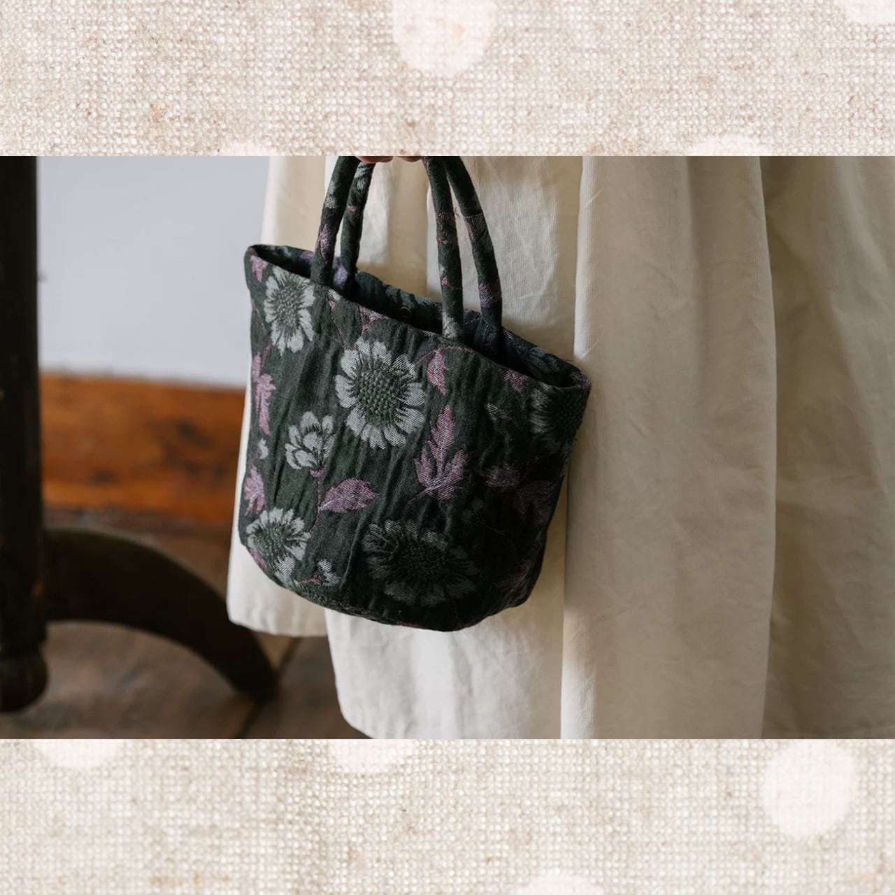 落ち着いた色合いの花柄ジャカード生地で仕立てたミニトートバッグ。