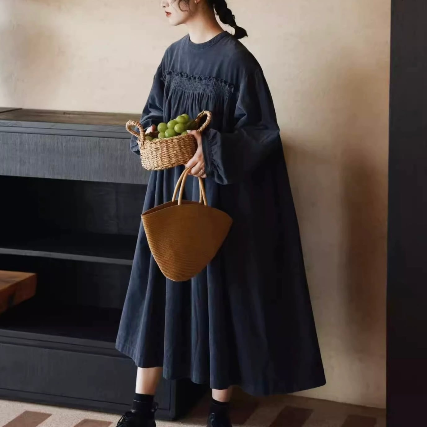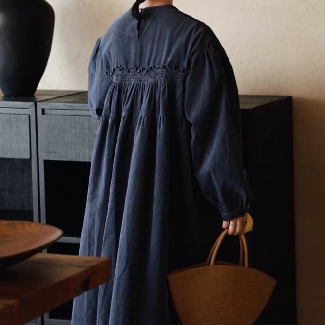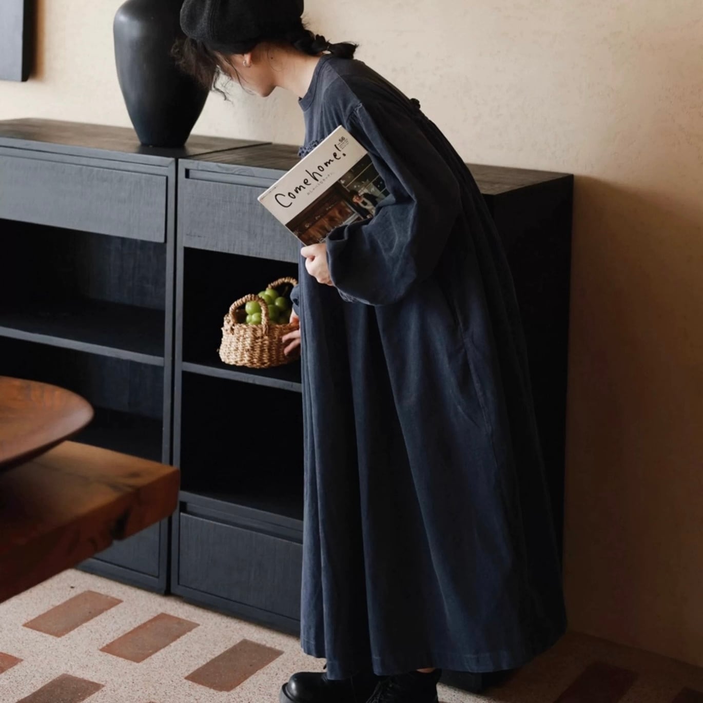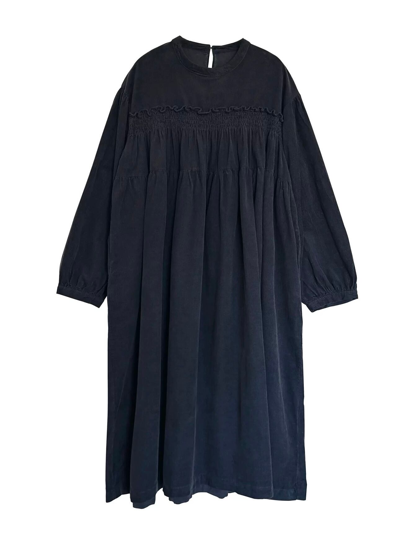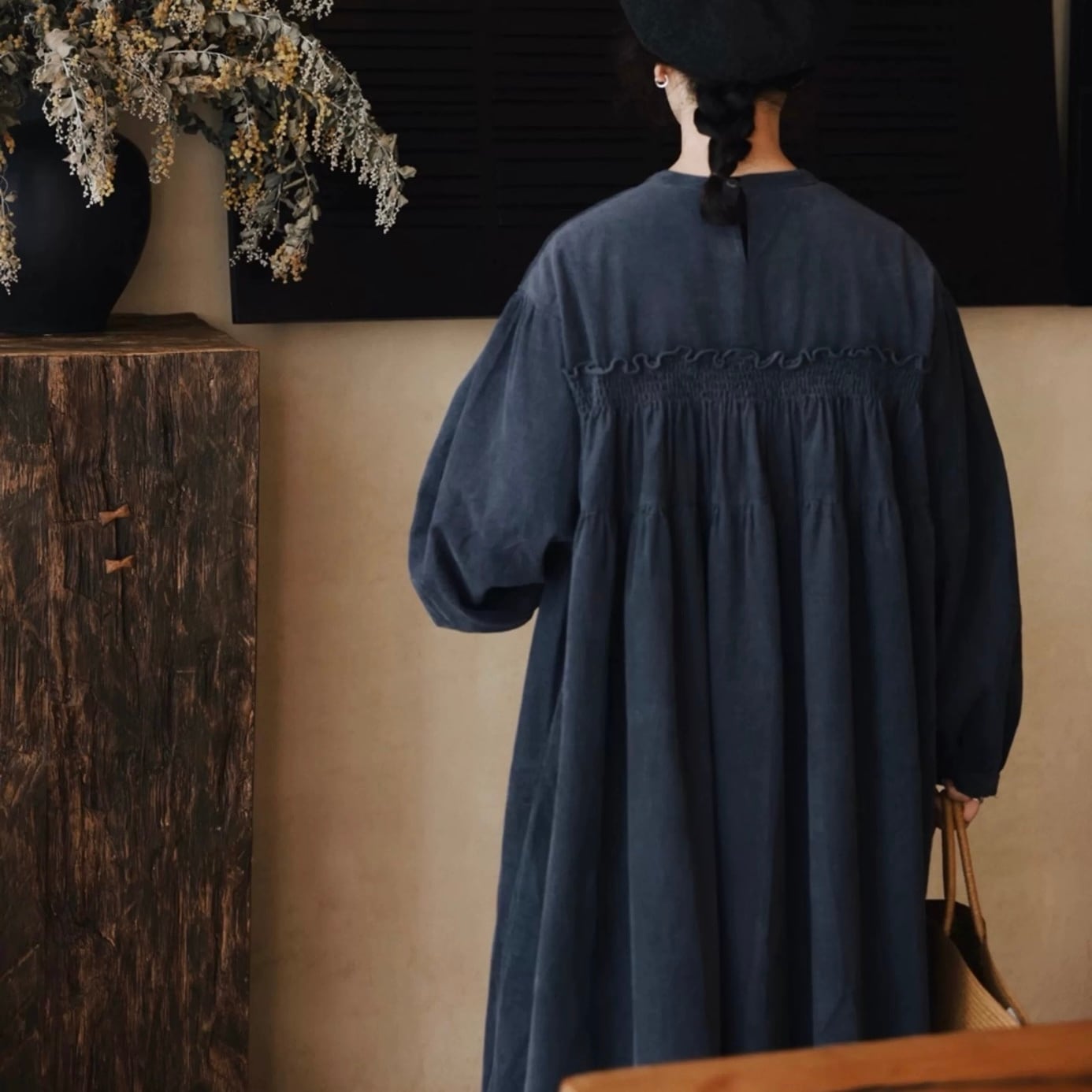 落ち着いた風合いのコーデュロイ生地を使ったロングワンピース。
