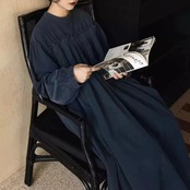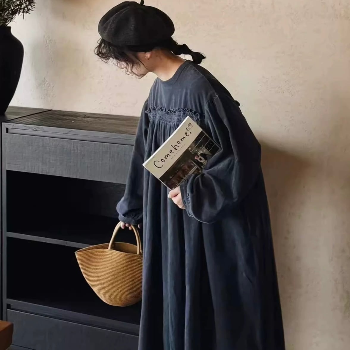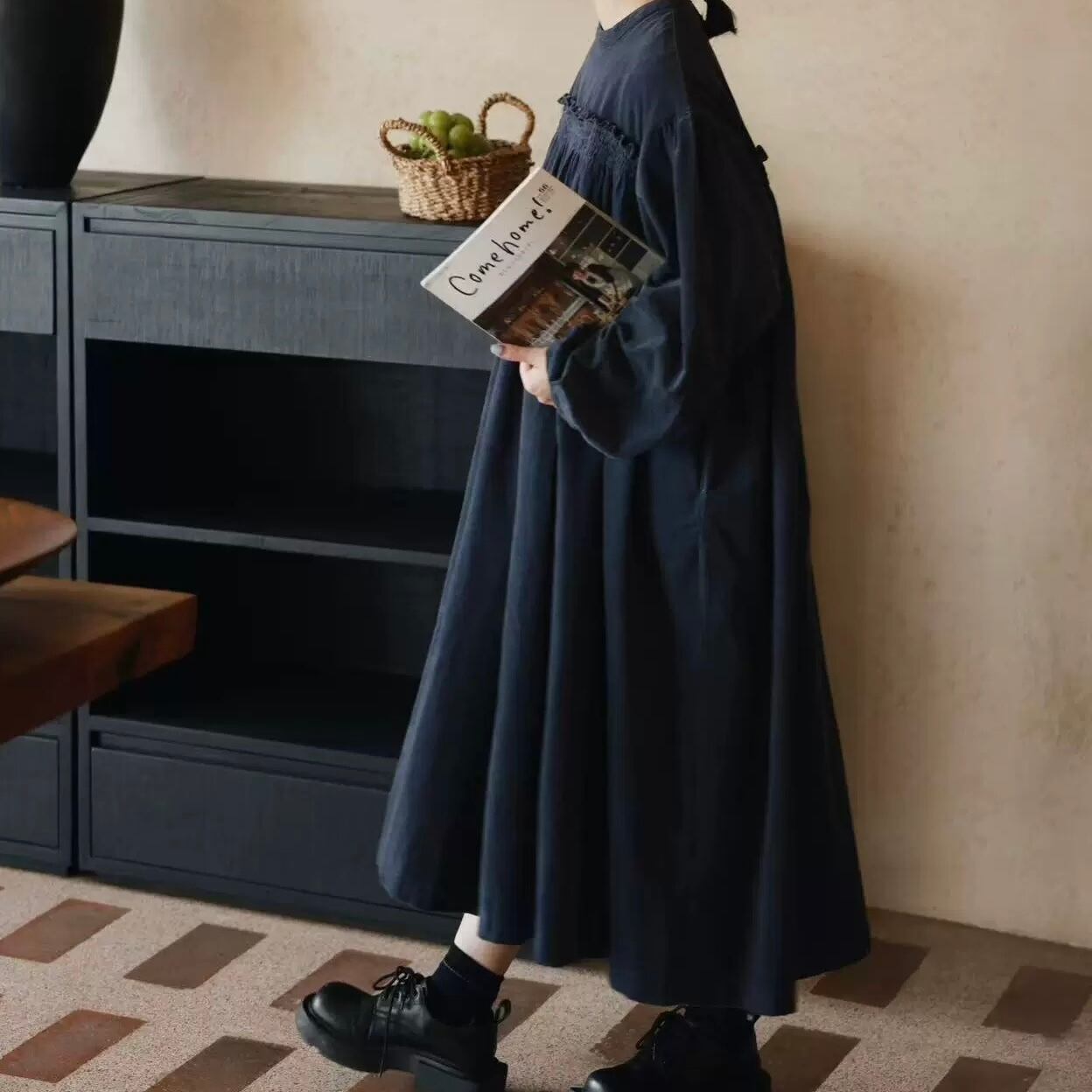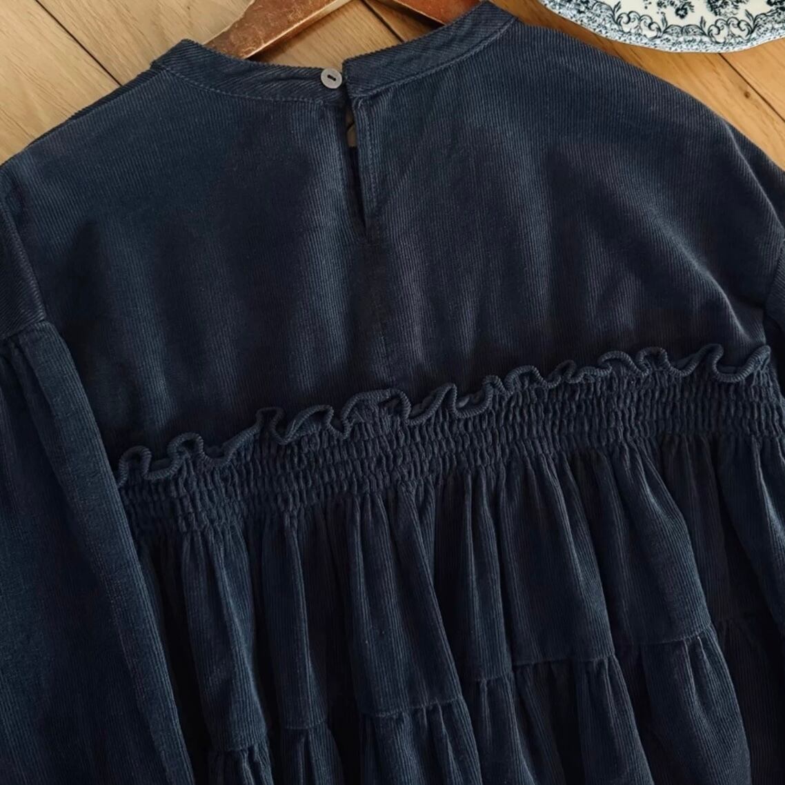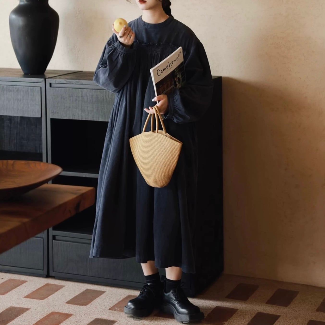 落ち着いた風合いのコーデュロイ生地を使ったロングワンピース。