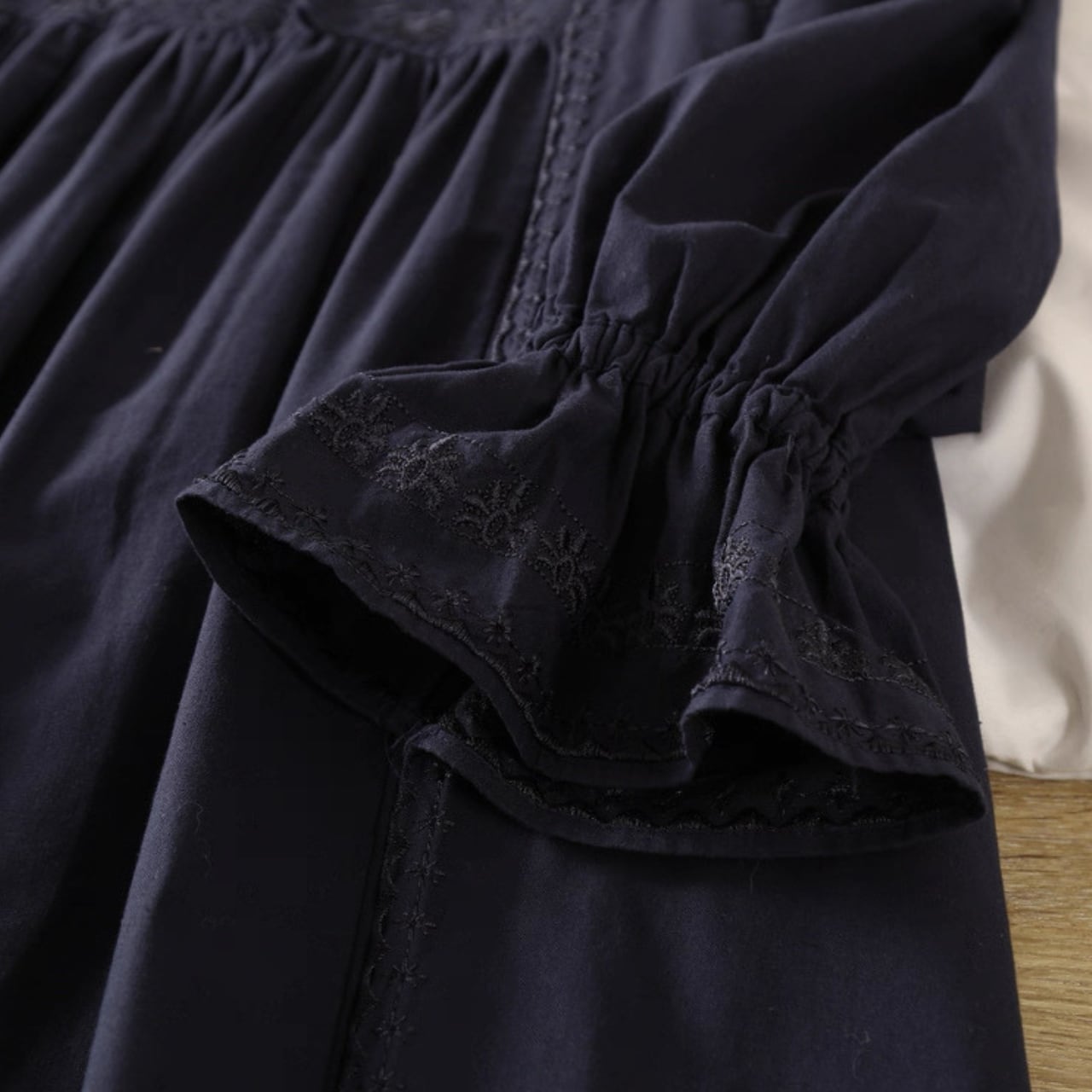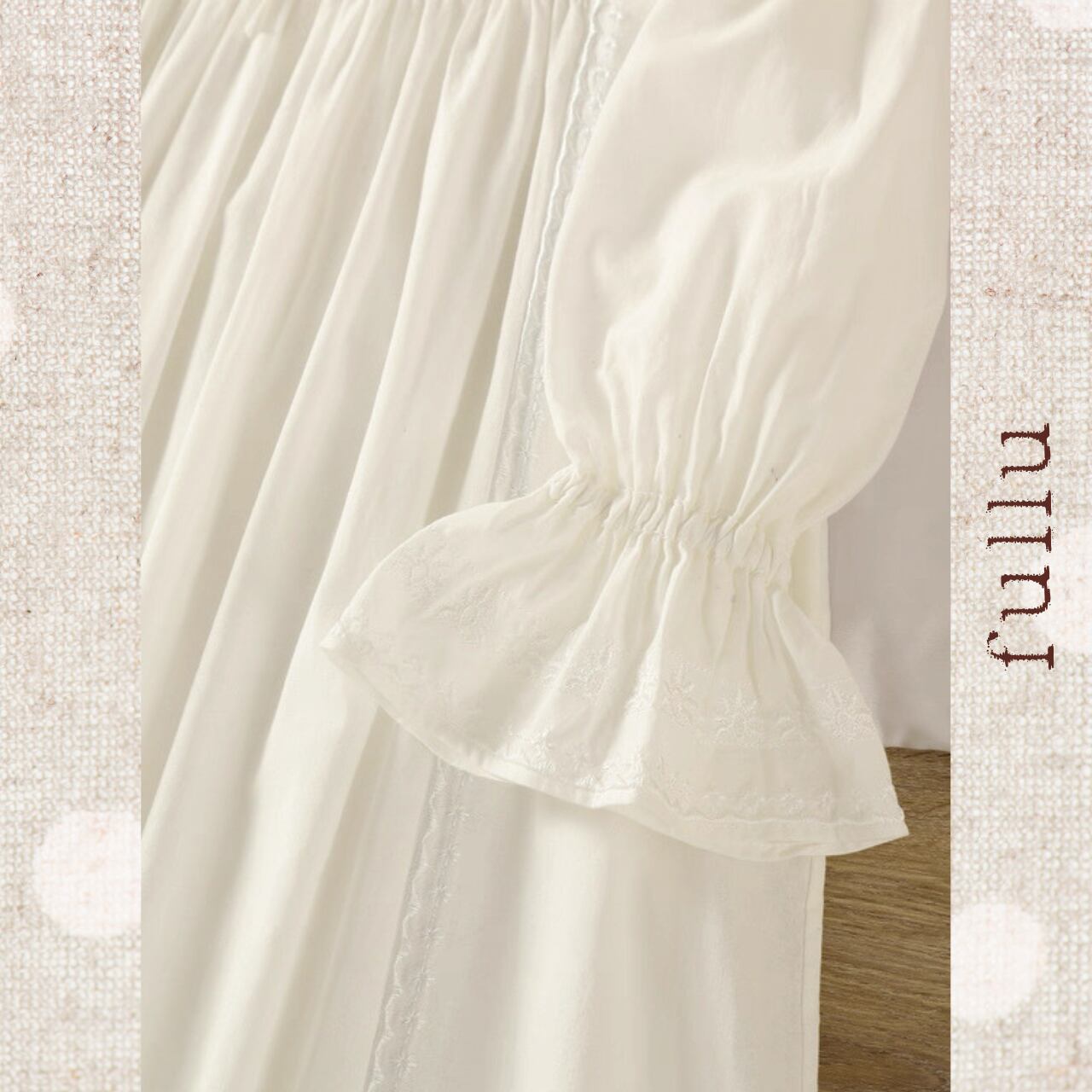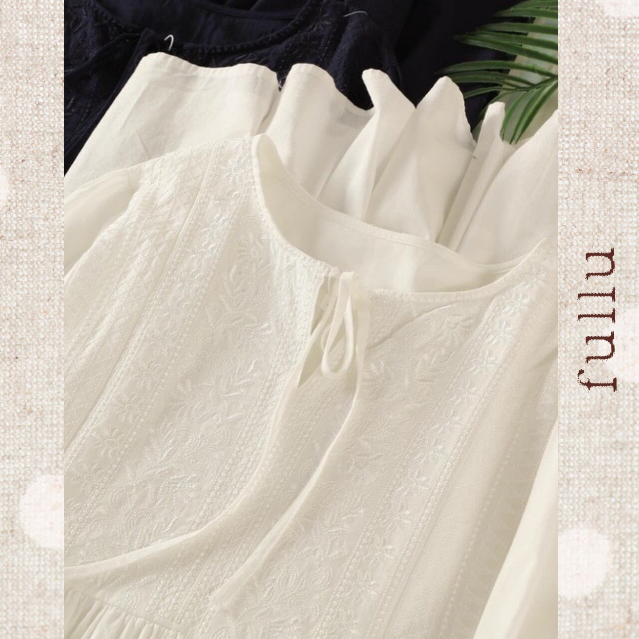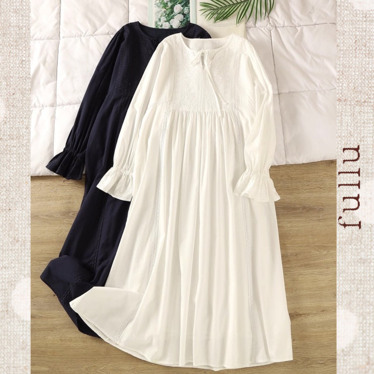 刺繍切替 ギャザーデザイン ロングワンピース 2color fu0913