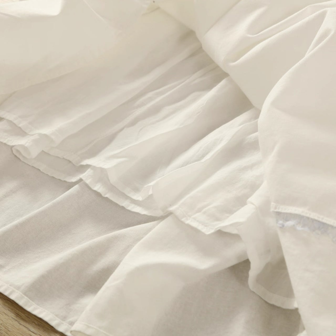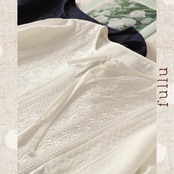 ネックラインは控えめなリボン仕様で、着こなしにさりげないアクセントをプラス。