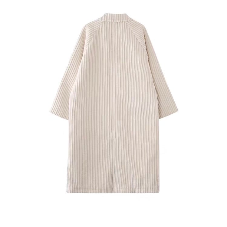 縦畝が特徴的なコーデュロイ生地を使用したロングアウター。